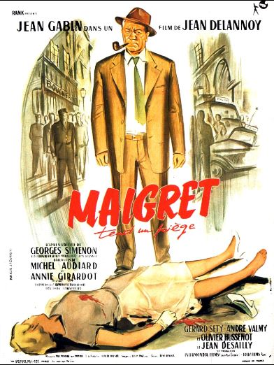 Personnage faisant partie intégrante du patrimoine français,Jules Maigret est né de la plume de George Simenon.Observateur,gouailleur,lassé et aussi opiniâtre qu'à ses premières heures,il trouve un incarnation idéale en la personne de jean Gabin.Pour l'occasion,l'acteur mythique a opté pour plus de subtilité et de pondération,ce qui lui va bien au teint."Maigret tend un piège"(1958)s'articule autour d'un tueur de femmes que Maigret pense avoir identifié et que sa femme va tout faire pour tenter d'innocenter(Annie Girardot,à la présence envoûtante).A noter aussi l'une des premières apparitions de Lino Ventura en sergent aux biscotos saillants.L'intrigue se déroule,sans surprise aucune et le tout manque clairement d'innovations pour le spectateur aguerri du XXIème siècle.Les joutes psychologiques ne subissent pas à combler un scénario bâteau et une mise en scène pantouflarde.A voir pour sa peinture d'un certain milieu artistique parisien des années 50. Un meurtrier en série poignarde des femmes bourgeoises et boulottes en plein Paris. Il met au défi Maigret de l’attraper et la traque débute. Le scénario classique mais bien écrit avec ce qu’il faut de rebondissements laisse la part belle dans la première partie au Paris des années cinquante. Beaucoup d’extérieurs et de plans longs permettent de bien s’installer dans le lieu de l’intrigue : les rues sombres des nuits parisiennes et les appartements d’époque. Une palette d’acteur référence se donnent aussi agréablement la réplique : Gabin, Girardot, Ventura, Desailly. La scène de l’interrogatoire final de Desailly par Gabin est très bien écrite avec un Gabin ferrant le gros poisson puis relâchant du mou jusqu’à attraper sa proie… du grand art. Ensuite le final s’étire en longueur et devient inutilement bavard. Le cinéma de Delannoy (le réalisateur) fût traité par « Les cahiers du Cinéma » et Truffaut en tête de cinéma à papa. Il est vrai qu’au même moment sévissait un précurseur de la Nouvelle Vague du nom de Melville et qu’ « A bout de souffle » sortira seulement deux ans plus tard. Cinéma d’un autre temps mais très efficace.