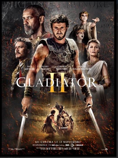 Après un joli générique de début qui fait le lien avec "Gladiator" premier du nom, force est de constater que le scénario est quasi copié-collé au premier opus jusque dans les passages oniriques ! La reconstitution historique en 2000 était passionnante malgré quelques erreurs ou anachronismes mais cette fois, malgré les années, le film franchit allègrement la ligne jaune de l'acceptable. On en sourirait presque jusqu'à ce qu'arrive le plus ridicule... SPOILERS voir site pour en savoir plus !... On savoure tout de même les décors et les costumes, on chavire sur les scènes de batailles et des combats qui restent d'une efficacité redoutable mais on est déçu par le héros, assuré par un Paul Mescal qui fait le job mais qui n'a clairement pas le charisme de son prédécesseur, et encore moins face à un Denzel Washington qui porte le film à lui seul. Le film est clairement médiocre comparé à son aîné, des idées grotesques qui sont censées nous aveugler face à une histoire qui reste beaucoup trop similaire, et qui est donc un brin ennuyeux et ennuyant. L'exemple parfait d'une suite qui n'aurait jamais dû voir le jour... Quand l'ombre du premier volet plane sur l'arène... Certains N°2 au cinéma ont réussi à marquer les esprits ("Terminator 2" en 1991 ou "Avatar 2" en 2022), mais ici que nenni ! Cette suite est largement moins attachante que le film de 2000, pourtant du même réalisateur, j'ai nommé Ridley Scott. Le nouvel acteur principal peine à captiver et manque cruellement de charisme, laissant les projecteurs à un Denzel Washington qui, lui, crève l'écran ! Les seules émotions réelles viennent des flashbacks vers le premier opus, ravivés par les musiques rappelant des moments marquants de ce chef-d'oeuvre originel. Toutefois, ce péplum parvient à maintenir un niveau général assez correct, grâce notamment à des scènes de combat soigneusement chorégraphiées. Quelques libertés ont été osées ici avec la réalité historique des jeux de Rome, optant radicalement pour un côté spectaculaire, et sacrifiant au passage la vraisemblance de ce drame d'action. Si l'ensemble manque d'une histoire puissante et touchante, l'aspect visuel compense en partie cette cruelle déception. Impressionnant, mais presque sans saveur !