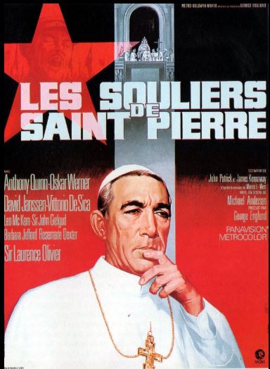 Ce que les années ont pu faire de Kiril Lakota méritent tous les éloges! Etre pape, c'est le plus grand honneur qu'il pouvait recevoir de ses pairs car Lakota a servi la foi et l'a défendu corps et âme! D'un secours inestimable, cet archevêque ukrainien deviendra pape malgré tout! On pouvait craindre le pire (Anthony Quinn en soutane blanche) Or, il n'en ai rien! L'acteur de "La Strada" et de "The Guns of Navarone" s'en sort avec les honneurs! Au point de mettre certaines critiques à genoux pour la sobriété de son interprétation! Tirè du roman de Morris West, "The Shoes of the Fisherman" est un film visionnaire même si on a dit dans le passé que le londonien Michael Anderson - à qui l'on doit le somptueux "Around the World in Eighty Days" - avait complètement raté l'adaptation de West! Composition remarquable de Quinn et reconstitution très réaliste, jusque dans les tenues! Laurence Olivier, Oskar Werner et David Janssen sont en revanche bien ternes, laissant finalement Quinn bien seul (telle la solitude du pape au Vatican) au niveau de l'interprétation! C'est anecdotique mais on peut souligner que Vittorio De Sica reprend en quelque sorte le rôle d'ecclésiastique qu'il avait tenu dans le film de Gianni Franciolini, "Ferdinando I re di Napoli"... Incapable de faire un film sur le moment présent, Anderson nous donne ici une œuvre visionnaire et pas innocente du tout. Imaginer un pape soviétique, dix ans avant le premier pape non-italien depuis des siècles, et avec des idées révolutionnaires (un peu dans tous les sens du terme), c'était un sujet chargé et le dérapage était facile (j'aimerais d'ailleurs bien savoir ce qu'en a pensé le Vatican). Pourtant, quitte à faire un peu d'anachronisme, je n'hésiterai pas à décrire le film comme une merveille de worldbuilding : médias, sociopolitique, dilemmes du sécularisme, tout est exploré et condensé en une seule expérience cinématographique. Anderson a toujours su faire un mélange très harmonique de petite et de grande histoire, et il est particulièrement réussi dans ce cadre papal où l'intimisme vaticanais rencontre les rapports de force internationaux. Mis à part l'hypothèse d'un pape communiste et du poids que cela pourrait avoir dans la diplomatie mondiale, le film reste plus que compréhensible et carrément pertinent aujourd'hui. Confirmé dans sa maîtrise du blockbuster avant que les blockbusters existent, Anderson est un réalisateur visionnaire à ne pas manquer. Au début les présentations et les petits soucis de la vie papale arrive à intéresser le spectateur, les artistes j'allais dire! les acteurs sont parfaits, mais ce qui me fait mettre un cinq c'est que toute cette première partie vous prépare à la plus belle des gifles avec la rencontre du pape et du dictateur chinois, Tout le film sert à ce dénouement, fort en émotion et donnant la leçon à la bienpensance occidentale.