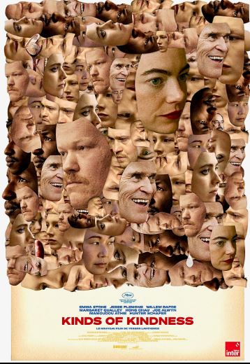 KINDS OF KINDNESS est une fable en tryptique qui suit : un homme sans choix qui tente de prendre le contrôle de sa propre vie ; un policier inquiet parce que sa femme disparue en mer est de retour et qu’elle semble une personne différente ; et une femme déterminée à trouver une personne bien précise dotée d’un pouvoir spécial, destinée à devenir un chef spirituel prodigieux.