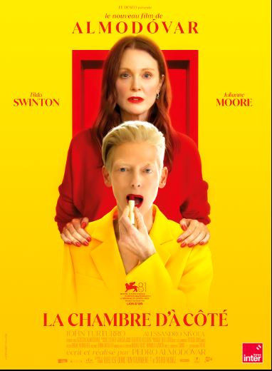 Comme pour chaque nouveau film d'Almodovar, les plans sont très esthétiques, colorés, rouges, beaux. Les actrices sont superbes également. En revanche, les dialogues restent assez convenus, le rythme est lent et très contemplatif, il ne se passe pas grand chose. Loin de ses meilleurs, ce premier Almodovar en anglais a donc été assez soporiifique pour moi, sans me toucher. Je suis passé à côté. Quelle déception ! Après ses deux courts métrages anecdotiques sponsorisés par des marques de luxe, Almodovar continue à vivre dans sa bulle chic et toc de luxe, coupé du monde, à discourir de manière lourde et sentencieuse sur l'état du monde, sur le mode, c'était mieux avant... L'extrème droite, l'écologie, l'euthanasie... tout y passe, sans oublier la playlist de ses films préférés, de très bon gout évidemment. ça se voudrait profond et émouvant et c'est juste snob et chic, réservé à une élite de pauvre gens riches qu'on ne laisse pas mourir en paix... Les actrices sont au garde à vous, mais les dialogues en anglais apparaissent souvent didactiques et les personnages sont très évanescents. La pauvre Julianne Moore joue les utilités pour faire briller sa copine. Quant on pense à la vitalité, la transgression, l'humour et la joie de ses premiers films, on ne peut que souscrire à ce vieil adage : la vieillesse est un naufrage. Je ne comprends pas. Ce film n’a rien d’une œuvre de Pedro Almodovar. On n’y retrouve ni son sens du personnage, ni l’habile usage de la musique, encore moins le travail du scénario. Énorme déception donc. Le sujet du suicide assiste à déjà été traité précédemment pas de très bons réalisateurs. Ce film n’apporte vraiment rien au débat. Moi qui habituellement ressors bouleversée d’une séance signée par Almodovar, je suis aujourd’hui simplement déçue de n’avoir rien ressenti. Un gros raté selon moi. Almodovar se délocalise aux États-Unis. Ceux qui y voient la perte de l'essence de son cinéma ont du oublier qu'il a lui-même déserté son cinéma depuis plus de 10 ans (pour ne pas dire quasi 20). La Chambre d'à côté est fade, d'une fadeur amériacine pourrait-on dire. Tout y est lisse, démonstratif et sans émotion. C'est étrange pour un film à la fois si bavard, et sur un thème essentiel : l'euthanasie qui est toujours refusée dans des pays se disant pourtant humaniste. Les deux actrices font un service minimum, oubliable.