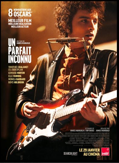 Frêle et incandescent, Timothée Chalamet mérite un Oscar pour son rôle de l’inconnu rebelle devenu héros populaire américain. "Un parfait inconnu" est le seul film décent qu’il était possible de faire sur Dylan, un film qui mesure l’énormité de son legs et s’interroge sur ce que ça doit faire à un gamin dans sa vingtaine d’avoir ce feu en lui, et au bout des doigts. Un très beau film sur la jeunesse, les pierres qui roulent, inconnues à elles-mêmes, et qui changent le monde au fur et à mesure que défile le bitume sous leurs pas. Plus qu’un biopic traditionnel, Un parfait inconnu est un film sur la jeunesse, ses rêves et ses contradictions. Il rend très actuels la musique de Bob Dylan et son message. De quoi réunir aujourd’hui les générations. Un parfait inconnu se révèle de facture plus classique mais apprend de nombreuses choses sur la star aujourd’hui âgée de 83 ans. Sans les drogues (c’est une production Disney) mais fidèle à l’énigme Dylan, ce sale type génial, ce troubadour fuyant. Chalamet, très convaincant, cherche moins à l’imiter qu’à en transmettre l’esprit. Tout comme Mangold évite toute psychologie, cette plaie des biopics qui plombait son « Walk The Line » sur Johnny Cash, pour incarner une époque et filmer la jeunesse d’un mystère. James Mangold réussit à cerner la personnalité opaque du musicien tout en lui conservant son charme énigmatique. Moins conventionnel que celui qu’il avait consacré à Johnny Cash dans « Walk the line » et moins audacieux que le « I’m not there » de Todd Haynes qui engageait six acteurs pour interpréter Dylan, ce « Parfait inconnu » se distingue par son habileté à ne pas chercher à cerner le mystère autour de la star. On savoure avec une pointe persistante de culpabilité cette superproduction aussi jouissive que blasphématoire pour le mythe rimbaldien. Quand un biopic semble à ce point formaté et conformiste tout en se focalisant sur un individu aux antipodes, c’est signe qu’il y a un problème quelque part. En tout cas, Todd Haynes peut dormir tranquille : son "I’m Not There" n’a pas fini de faire référence en tant que percée subjective et composite de la vie et des paradoxes de Bob Dylan.