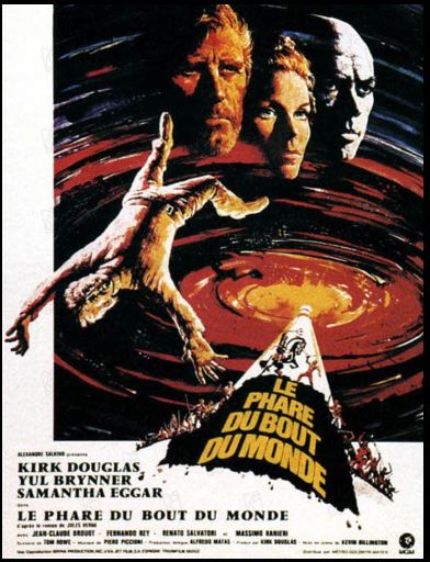 Adapté de Jules Verne avec Kirk Douglas en vedette, c'est, c'est... Et non, ce n'est pas « Vingt mille lieues sous les mers », mais bien « Le Phare du bout du monde », production autrement moins célèbre ayant connu un sévère échec au box-office. Très moyennement apprécié à l'époque, le redécouvrir aujourd'hui paraît pourtant salutaire. Tout n'est pas parfait : il ne s'y passe finalement pas tant de choses, la réalisation de Kevin Billington (dont c'est le principal fait d'armes principal, sans doute injustement) peut déconcerter, les motivations de certains personnages restent quelque peu floues... Reste que voir une telle production tenter des choses aussi étonnantes, c'est à saluer. Beaucoup de cruauté, de violence, n'hésitant pas à malmener son héros (et les spectateurs avec), le tout au milieu d'un cadre souvent bien exploité, pouvant être aussi séduisant qu'inquiétant. Pas de romantisme (ou si peu, et certainement pas comme on l'entend), de grands discours, juste une chasse à l'homme étrange, presque surréaliste, sachant ponctuer son récit de scènes marquantes, parfois imprévisibles malgré quelques arrangements scénaristiques. Dommage que les relations entre les différents protagonistes, pourtant dotées d'un réel potentiel, ne soient que très partiellement exploitées, à l'image d'un affrontement Kirk Douglas - Yul Brynner (refaisant en quelque sorte le match des Oscars 1957 remporté par le second!!) intrigant mais manquant de fond, même si cela lui donne une dimension mystérieuse plutôt intéressante. Sans doute aurait-il fallu également mieux utiliser la très belle Samantha Eggar, mais là encore, son « absence-présence » apporte une tournure plutôt inattendue au film, loin des situations traditionnelles que l'on pouvait imaginer, provoquant un certain trouble pour le spectateur. Beau casting, donc, comme vous avez pu le comprendre, auquel vient notamment s'ajouter Renato Salvatori ou encore Jean-Claude Drouot, surprenant dans un rôle pour le moins antipathique. Une œuvre à part, souvent au bord de la folie (à l'image d'antagonistes assez ravagés), qui mériterait assurément d'être connu par un nombre beaucoup plus important. Un film très différent du roman de Jules Verne duquel il est adapté. L'environnement rugueux est très fidèle mais le récit se permet d'être beaucoup moins moralisateur, moins manichéen, d'ajouter un personnage féminin et de se montrer encore plus sadique. D'ailleurs la dernière chose que l'on pourrait reprocher à cette œuvre c'est un trop-plein de tendresse car peu de films se sont distingués par la présence d'autant de sadicité ; donc que ceux qui s'attendent à un divertissement type Disney passent surtout leur chemin. Par contre ce que l'on pourrait reprocher à ce "Phare" c'est un manque flagrant de rythme dans la première moitié de la seconde partie et parfois des relations entre les différents personnages pas assez exploitées. Quand au très international casting, il est une grosse curiosité à lui seul puisqu'il réunit Kirk Douglas, Yul Brynner, Samantha Eggar, Fernando Rey, Renato Salvatori et même Jean-Claude Drouot qui est très très loin du sympathique Thierry la Fronde. Etant donné que je suis bien loin d'être un féru de lecture, je n'ai donc pas la moindre connaissance quant au livre de Jules Verne dont ce film est tiré. Il est un adage, que nous autres, amateurs de cinéma, nous nous plaisons à utiliser et qui est le suivant : voici l'exemple typique du film qui est sauvé par ces acteurs. Combien de fois avons nous écrit ceci. Et c'est un adage qui s'applique en grande partie à ce « Phare du bout du monde » qui voit le duel entre le gardien du phare du Cap Horn et le chef d'un gang de pirates sanguinaires. Ce qui signifie donc un duel entre Kirk Douglas et Yul Brynner. Et ça, ça vaut pas mal de cacahuètes. Film très classique sur sa forme et sur son fond, on pourra tout de même déceler une certaine méchanceté dans le déroulement de l'histoire (ou plutôt de l'affrontement). Certaines scènes dégageant une véritable violence. Ce qui n'est pas pour nous déplaire. Inutile de dire que Douglas y est impérial tout comme Brynner plein de méchanceté et de charisme. Et les deux autres poids lourds du film (Fernando Rey et Renato Salvatori) assurent également. Un exemple typique de cinéma sans génie mais très efficace.