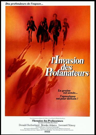 Je suis sur que "l'invasion des profanateurs" a causé quelques frissons d'épouvante lors de sa sortie mais c'était en 1978 ! Reste le statut de film culte, l'histoire qui fait un peu penser aux envahisseurs de David Vincent,(omniprésents dans la série avec leur petit doigt rigide (là ce sont des hommes plantes)) et des tetes d'affiche 5 etoiles : Donal Sutherland, Jefj Goldblum et Robert Duvall (on note meme une apparition de Don Siegel, réalisateur fetiche de Clint Eastwood en chauffeur de taxi). Les effets spéciaux sont... d'epoque. A voir une fois ! Bravo pour la dernière minute