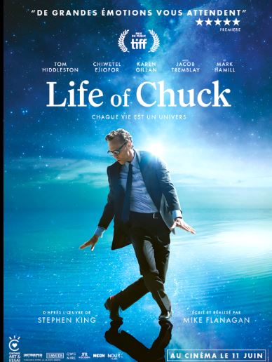 C’est la vie d’un homme ordinaire, éprouvé par la mort, racontée à l’envers, on commence par sa disparition, qui prend une dimension cosmique, puis on remonte jusqu’à son enfance à travers plusieurs épisodes. Les moments marquants de notre enfance nous influencent plus qu’on ne le pense, voilà ce que nous dit ce film, très bien construit, avec un intérêt qui ne faiblit pas. Un film très littéraire (voix off, importance des dialogues), philosophique aussi bien sûr, mais qui ménage aussi de purs moments de grâce, autour de la danse notamment, et une dose d’étrange. Un film qui est à l’opposé du divertissement, chacun y trouvera des interrogations sur sa propre vie. Un beau et profond moment de cinéma. The Life of Chuck, réalisé par Mike Flanagan et inspiré de l’œuvre de Stephen King, nous plonge dans l’intime de l’existence de Chuck, un homme dont la vie est explorée à rebours. Tom Hiddleston, dans une prestation émotive et physique, incarne avec brio la dégradation de son personnage, entre fragilité et force. Le film s'aventure dans le fantastique et la science-fiction, mais sans perdre de vue sa dimension humaine. Flanagan, loin de son style habituel d’horreur psychologique, offre ici une œuvre lumineuse, explorant la mémoire, la fin de vie et la beauté des instants partagés. En choisissant une narration à rebours, il magnifie chaque moment de l'existence de Chuck, célébrant l'art de vivre. Ce film, empli d'humanité, invite à saisir l'essence de chaque instant avant que tout ne disparaisse, offrant une réflexion poignante et optimiste sur la condition humaine. Life of Chuck est une escale cinématographique rare, un film qui ose la douceur, l’émotion, la contemplation. À travers une narration élégamment inversée, Mike Flanagan nous offre une réflexion sincère sur la vie, sa valeur et notre rapport au temps. Les performances d’ensemble, et tout particulièrement celle de Tom Hiddleston, illuminent ce voyage vers l’essentiel. Une œuvre qui réchauffe le cœur et invite, dès la sortie des salles, à partager émotions et discussions.