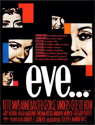 Un drame noir et cynique des années 1950, au cours duquel Joseph L. Mankiewicz nous ouvre les coulisses du monde du théâtre. Il souhaite ainsi dénoncer le star-system, un sujet largement filmé à l'époque, et principalement marqué par l'excellent "Boulevard du Crépuscule" de Billy Wilder. Une réalisation qui bénéficie d’une grande maîtrise formelle ; la mise en scène y est élégante, le schéma narratif est intéressant et audacieux, et dialogues et casting sont brillants. Le réalisateur délivre et développe avec patience le récit et les personnages, complexes et fascinants, ce qui conduit malheureusement à quelques moments d’ennui. Une œuvre majeure de Mankiewicz qui n’atteint cependant pas le génie de son thriller "Le Limier" ! Brillamment mis en scène et interprété de façon magistrale, (Celeste Holm est trop craquante) ce film qui reçut un triomphe au festival de Cannes en 1950 enfonce néanmoins des portes ouvertes (pour réussir, il faut intriguer, coucher… ah bon, certains l'ignoraient donc ?) et souffre de sa longueur (2 h 15) : certaines scènes sont interminables et il y a bien une demi-heure de trop !. Sans doute surestimé, Eve n'en reste pas moins un excellent film.