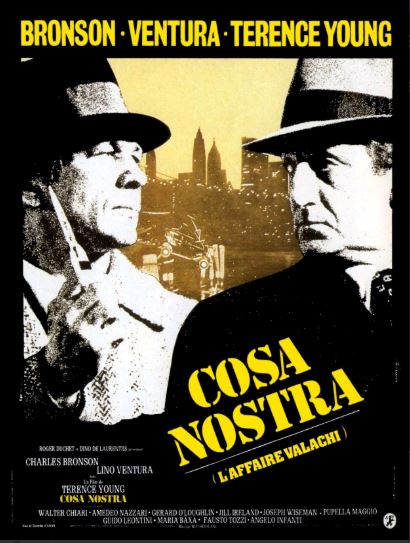 L'immense succès de "The Godfather" entraîna de suite la mise en chantier, (la même année en 1972), de "The Valachi papers", alias "Cosa Nostra" avec deux acteurs populaires que le public aime retrouver sur grand écran : Charles Bronson et Lino Ventura! Réalisé par Terence Young qui se tire tant bien que mal de l'aventure, le film est une chronique de trente ans de vie à l'intérieur de la Mafia! En exergue, ces quelques mots de Robert Kennedy : « Le crime n'est pas affaire de race, de langue, de religion ; le crime est affaire de criminels. » D'après Le dossier Valachi de Per Maas, Young signe un policier franco-italien de bonne facture dont la reconstitution n'a rien de déshonorant! En dépit d'une solide distribution, "The Valachi papers" n'arrive jamais à nous faire oublier le film de Coppola! Reste que le public français ne rejeta pas le film de Young avec près de deux millions d'entrées dans les salles obscures... Film très intéressant qui explique à merveille la structure et les rouages de la mafia italienne. Charles Bronson est très bon et Lino Ventura est un "Capo dei Capi" exceptionnel... Film de gangster sur la Mafia tout à fait correct. Le scénario reprend les 30 grandes années de la Mafia américaine au travers les yeux d'un proche des grands patrons (Bronson toujours impassible). Pas toujours passionnant, beaucoup de violence et de sang, la réalisation n'est pas très inspirée et en plus plusieurs anachronismes ou faux-raccords (très visibles). Après le succès du "Parrain" de Coppola il faut croire que le genre a été relancé, "Lucky Luciano" de F. Rosi sortira en 1973... Ici le film relate la vie de Valachi un repenti qui a été un proche des parrains entre 1929 et 1962, date où il raconte tout ce qu'il sait. Le film tente le réalisme un maximum en se servant du flashback (Valachi est interrogé sur son passé). La mise en scène est très sobre sans doute un choix délibéré de la part de Terence Young pour coller au genre mais il s'avère que ce choix ralenti le rythme. Si Lino Ventura est parfait mais sous-employé Charles Bronson n'est pas crédible en mafieux italien mêm si son charisme fait le reste. Quelques anachronismes (peu important) mais par contre on est surpris par le trou béant sur la période 1947-1960 (nviron) complètement occulté. C'est donc un bon film, fidèle à la réalité mais qui manque sans doute de punch.