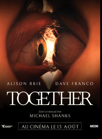 Si Together sait être effrayant, il est aussi touchant, notamment dans son épilogue. Son envergure resserrée évite au film de trop verser dans le grand guignol, au profit d'un drame plus intimiste. Le film est moins génial que l’idée mais Together s’en sort avec les honneurs, surtout dans sa première partie qui vibre au rythme de l’excellent Dave Franco. Michael Shanks manie l’humour noir et le fantastique avec dextérité. Son "body horror" est un savant mélange entre le cinéma de M. Night Shyamalan et celui de David Cronenberg. Une œuvre au concept vraiment original et une brillante métaphore sur la codépendance amoureuse. Finalement, Together est assez proche des grands films d’invasion d’un corps par un parasite à la différence que ce corps parasite qui nous dévore de l’intérieur ce n’est pas une forme de vie alien, c’est l’être avec qui on partage sa vie, l’objet de son amour. Sur un marché de l’horreur saturé de navets formatés, Michael Shanks, sans prétention, grave deux-trois images inoubliables dans nos rétines et réussit un premier film… scotchant. Opérant la rencontre improbable entre la romance et le "body horror", Michael Shanks signe un spectacle grand-guignolesque, plus amusant que subtil, mais joliment incarné et mis en scène. L’atout majeur de ce film réside dans sa forme et son rythme qui rappellent fortement les cauchemars mis en scène par Jordan Peel (Get out, Nope). Ce n’est pas un reproche, bien au contraire.