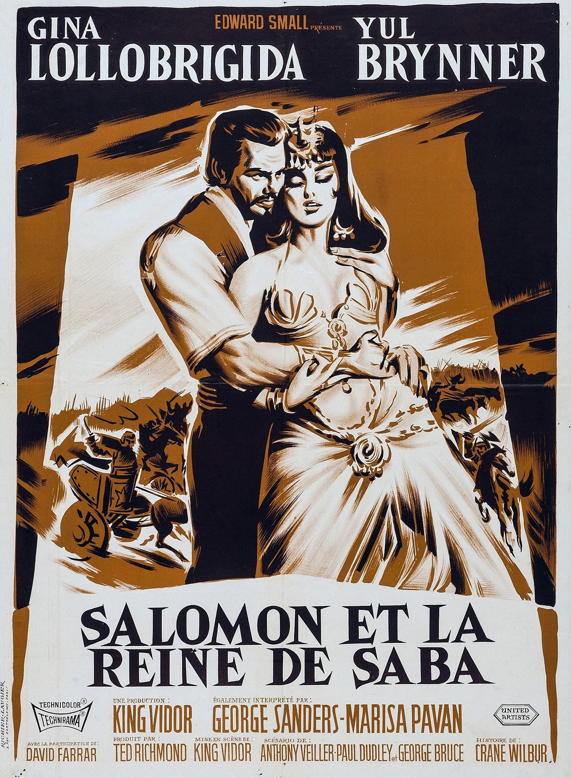 Une œuvre passionnante réalisé en 1958 par King Vidor qui, même si ce n'est pas un sommet du genre péplum, se suit avec intérêt !! Salomon est couronné par le roi de Jérusalem (son père) à sa succession dont le frère voulant prendre sa place en est jaloux. Le nouveau roi demande au chef de son ennemi, la reine de Saba, une invitation en Israel en guise de paix mais une chose inattendue arriva, les deux chefs vont tomber amoureux malgré l'opposition de leurs peuples. King Vidor, producteur et cinéaste de ce long métrage, signe un beau film avec une réalisation qui vieillit bien avec du romanesque, de la trahison et du spectaculaire bien traités. Yul Brynner, qui se laisse pousser les cheveux et la barbe pour incarner Salomon, signe l'une des meilleurs performances de sa carrière aux cotés de la belle et talentueuse Gina Lollobrigida, d'excellents acteurs secondaires et de nombreux figurants. Pour tous les amateurs de ce type de film qui, je pense, apprécieront. Malgré une réputation plutôt moyenne, j'ai trouvé ce film pas mal du tout. La mise en scène est moins brillante que celle proposée par Vidor habituellement mais c'est tout de même du beau travail, avec quelques scènes fort spectaculaires et quelques moments d'intimité entre les deux personnages principaux plutot subtils. De plus, l'interprétation, et notamment celle de George Sanders, est très bonne. Un bon film. Ce film est un chef-d'oeuvre incontesté du film à grand spectacle tel que Hollywood en concevait dans les années 50, rappelez-vous les Dix Commandements.. Il fut tourné en Espagne où le réalisateur fit reconstituer le royaume d'Israël avec une réplique du temple de Salomon et un quartier entier de l'antique Jerusalem dans les studios de Séville. Les scènes de combat furent tournées dans le désert proche de Saragosse, dont la fameuse scène finale qui est le clou du film, avec la participation de 5000 soldats espagnols déguisés en Egyptiens. Au départ, c'était Tyrone Power qui incarnait le roi Salomon, mais il succomba à une crise cardiaque le 15 novembre 1958 lors de la scène de duel final avec George Sanders ; Yul Brynner le remplaça au pied levé, et il fallut retourner toutes les scènes où Tyrone apparaissait, soit près de la totalité du film. Dans son rôle, Yul ne démérite pas, il arbore cette prestance virile et majestueuse comme il le fit pour son rôle de Ramsès dans les Dix Commandements, ou son rôle de roi de Siam dans le Roi et moi. Le budget colossal pour l'époque permit au directeur artistique de soigner particulièrement les décors, les armes et les costumes de Gina Lollobrigida, à défaut d'une véracité historique, et la musique un peu ethnique de Mario Nascimbene donne de la puissance à cette fresque biblique. Le résultat est visible sur l'écran, on peut le savourer..