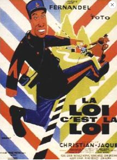 Une très sympathique comédie française, jouant principalement sur le comique de situation et l'aspect ubuesque des tracasseries administratives de notre pauvre Fernandel... Certes pas un chef d'oeuvre, mais un authentique bon moment de cinéma, injustement oublié (et qui se classe certainement dans le haut de la filmographie de Fernandel) Tout plein de rocambolesqueries qui nous mènent en bateau durant tout le film, que Fernandel qualifie lui même de cocasse. Ils ne manquaient pas d'idées pour faire des comédies à l'époque avec un scénario bien inventif pour faire rire les spectateurs, c'est le cas avec "La loi c'est la loi" réalisé et co-scenarise par Christian-Jacque qui mettait en valeurs deux comédiens hilarants comme Fernandel, le Français, et Toto, l'Italien, qui s'eclatent pour nous divertir. L'histoire d'un douanier Français qui prend son métier avec droiture dans un village qui sépare la France et l'Italie d'arrêter les Italiens qui passent la ligne de frontière. Mais la malédiction d'un jour voit son passeport national être l'autre côté du pays par naissance d'accouchement. Les gags s'enchaînent pour notre plus grand plaisir et il y a de bonnes trouvailles scenaristiques. Je m'attendais à pas grand chose de ce long métrage mais j'ai pris plaisir à le regarder, le charme du vieux cinema Français qui ici vieillit bien. Il y a Noël Roquevert au casting. Ah la la, c'est bon, je le recommande ce film. Une très sympathique comédie, jouant principalement sur le comique de situation et l'aspect ubuesque des tracasseries administratives de notre pauvre douanier FERNANDEL. Un authentique bon moment de cinéma, avec un excellent duo de comiques : TOTO et FERNANDEL. Film à découvrir ou à revoir.