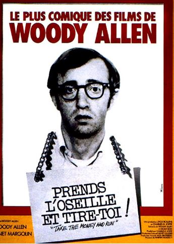Amusant, mais totalement inutile. Woody Allen, une fois de plus, s'engage dangereusement dans le superflu commercial, qui essaye de nous faire croire que le simple fait qu'un film soit drôle -où qu'il inclut ledit personnage dans son casting- suffit à le rendre indispensable. Or, "Take the money and run" n'est au demeurant qu'une étrange comédie qui passe se temps à se moquer d'un imbécile, pour la seule raison qu'il est un imbécile. On rit jaune de tant d'oubli de charité, on feint l'extase, et on passe vite à autre chose. Mon dieu que tout ceci a vieilli . Ici Woody Allen débutant nous présente une succession de gags plus ou moins appuyés qui une fois sur deux tombent à plat. Malgré tout on passe un bon moment à suivre les déboires de ce raté devenu la honte de ses parents grâce à la voix off qui ajoute une distance renforçant l’effet comique des situations. Woody Allen est visiblement inspiré à l’époque par le comique basé sur l’absurde des Marx et de Mel Brooks dont on sait qu’il a aujourd’hui moins d’adeptes. Par la suite il préférera un comique beaucoup plus axé sur la psychologie des personnages dans lequel il est beaucoup plus à l’aise. A noter que Janet Margolin est à croquer.