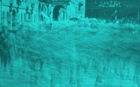 | ... Nous abordons avec cette image une période déjà ancienne et assez courte durant laquelle Maldor s'était entiché d'une sorte de boîte à chaussures qu'il avait transformée en appareil photo rudimentaire ( procédé dit "sténopé" = objectif remplacé par un simple trou d'aiguille) permettant (et demandant) de longues poses au cours desquelles seuls les sujets se déplaçant lentement, voire pas du tout ou s'immobilisant de longs moments, peuvent espérer laisser jamais une trace de leur passage...Au hasard des déplacements d'individus dans une foule ou d'objets divers en mouvement, on obtient des effets souvent curieux qui transforment le réel, par exemple comme ici, en des sortes de bas-reliefs, et qui évoquent des choses ou des évènements qui n'y étaient pas...Scènes entièrement livrées à l'imagination de l'artiste qui s'empresse de les titrer à sa façon... |