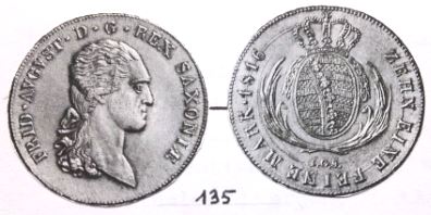 1807-1813 ALLEMAGNE Thaler (ar) ( 38 mm ) (n°278) WESTPHALIE (Jérôme Napoléon roi) Seul système bimét. en Allem. avec syst. fr. : en or 40,20, 10 et 5 franken, en argt 5, 2, 1 et 1/2 franken, billon 20 et 10 cents, cu 5, 3, 2 et 1 cent Syst. german. : or 10 et 5 thalers, argt thaler, 2/3 et 1/6, billon 1/12 et 1/24 th. , mariengroschen et 4 pfen., cu 2 et 1 pfen. ROY. DE BAVIERE Modèles les plus imaginatifs et raffinés dieu-fleuve sur des ducats, vues panoramiques sur thalers. Gde influence sur les petits états voisins, le royaume de Saxe (comprenant plusieurs duchés frappant monnaie) étant le plus gros producteur de pièces de tous les états (n°278).