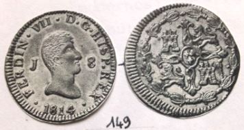1821-1823 8-maravedis (cu) ( 32mm )(n°288) 1821 PRUSSE Passage du gutegroschen au silbergr. (1 thaler = 32 silbergr. divisés en 12 pfennigs). ( / Armoiries des états satellites du royaume et toujours XIV (ou VII sur les doubles) "eine fein mark". 1823 IRLANDE Dernier monnayage anglo-irlandais (intégré au monn. angl.) : 1 penny et 1/2 en cuivre. 1823 ESPAGNE Retour au syst. préconstitut. Or 2 escudos, Argt 4, 2 et 1 real de plata - Cu 8 (n°288), 4, 2 et 1 maravedis.