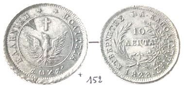 1828-1830 10-lepta (cu) ( 33 mm )(n°291) 1828 GRECE (Républ. Indép.) Création d'un syst. monétaire (jusque là, pièces turques ou europ.) avec pour u.m. le phénix d'argent de 100 lepta. En argt 2 1/2 et 5 ph. , en or 20 et 10 ph. Seules furent frappées (pénurie de métal) la 1 phénix et les 1, 5, 10 (n°291) et 20 lepta de cuivre et cela à la 1ère Monnaie grecque dans l'île d'Egine (avec de l'argt de butin et le cuivre des canons turcs). 1830 FRANCE (Louis-Philippe) Continuation globale mais au revers une couronne remplace l'écu des Bourbons de ses prédécesseurs Louis XVIII et Charles X. s |