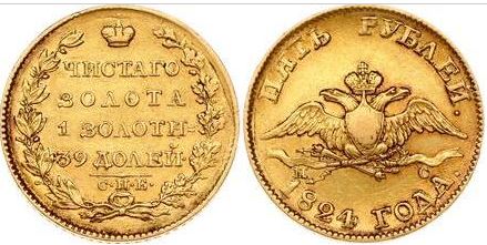 1817-1818 5-roubles (or à 0.917) ( 23 mm - 6.5g )(n°286) RUSSIE (Alex. Ier) 1ère émission significative de pièces d'or 5 roubles ( / Aigle bicéphale de style agressif)(n°286) PAYS-BAS (Guillaume Ier d'Orange) Création du cent (+1/2) de cuivre + 5, 10 et 25 cents d'argt (monogr. / armoiries) + 3, 1 et 1/2 gulden d'argt (effigie). En or, les 5 et 10 gulden. (Sans conformité avec l'or français).