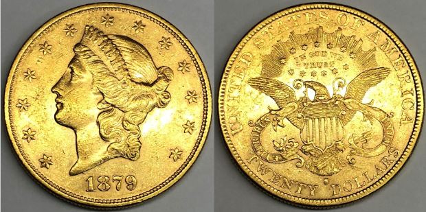 1848-1849 20-dollars (or à 0.900) ( 34mm - 33g )(n°300) 1848 ETATS-UNIS La découverte des gisements d'or de Californie aggrave encore le déficit de pièces d'argent. Deux nouvelles val. d'or : 20-dollars ("double eagle")(n°300) et 5-d. 1848 SUISSE (Confédération Helvétique) Fin des droits cantonaux à battre monnaie. 1849 ANGLET. (Victoria) Tentative d'introduction partielle du syst. décim. avec 1 florin (2 shillings) d' 1/10 de livre. 1849 RUSSIE La taille retombe à 32 roubles / u.d.p. (5, 3 et 2 kopecks).