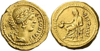 44-28av Auréus (or) (20mm - 8.2g) Buste de Flora / Vestale (voilée) (39av) (n°147)