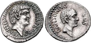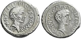 44-28av César / Marc Antoine (42av) (n°136) Cette pièce (denier) existe aussi en auréus.