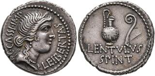 44-28av Tête de Libertas / Cruche (capis) et Lituus (42av) (n°132)