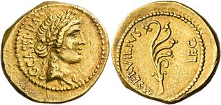 44-28av Auréus (or) (20mm - 8.2g) Marc Antoine / Octavien (futur Auguste) consul. (41av) (n°141)