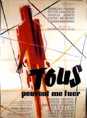 - "Tous peuvent me tuer"-(Henri decoin)-(1955) Policier Films notables : Le mouton(1960), Faites sauter la banque(1963), Echappement libre(1964), L'homme à la buick(1968), La valise(1973), Les galettes de Pont-Aven(1975), L'imprécateur(1977), Un moment d'égarement(1978), Pétrole!Pétrole!(1981), Coup de torchon(1981), L'amour en douce(1985), Quelques jours avec moi(1988), Uranus(1990), Tous les matins du monde(1991), L'élève(1996), Les âmes grises(2004)... |