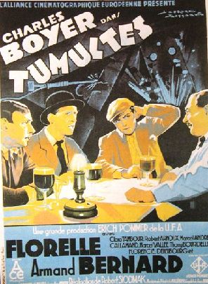 - "Tumultes"- (Robert Siodmak)-(1931) Comédie dramatique Films notables : Cartouche(1934), La porte du large(1936), Barnabé(1938), Moulin Rouge(1939), L'assassin habite au 21(1942), L'affaire du Grand Hôtel(1945), La cage aux filles(1949), Andalousie(1951), Le Comte de Monte-Cristo(1953), La bande à Papa(1955), A pied à cheval et en voiture(1957), Soupe au lait(1958),Un singe en hiver(1962)Le majordome(1964), Le grand restaurant(1966)... |
