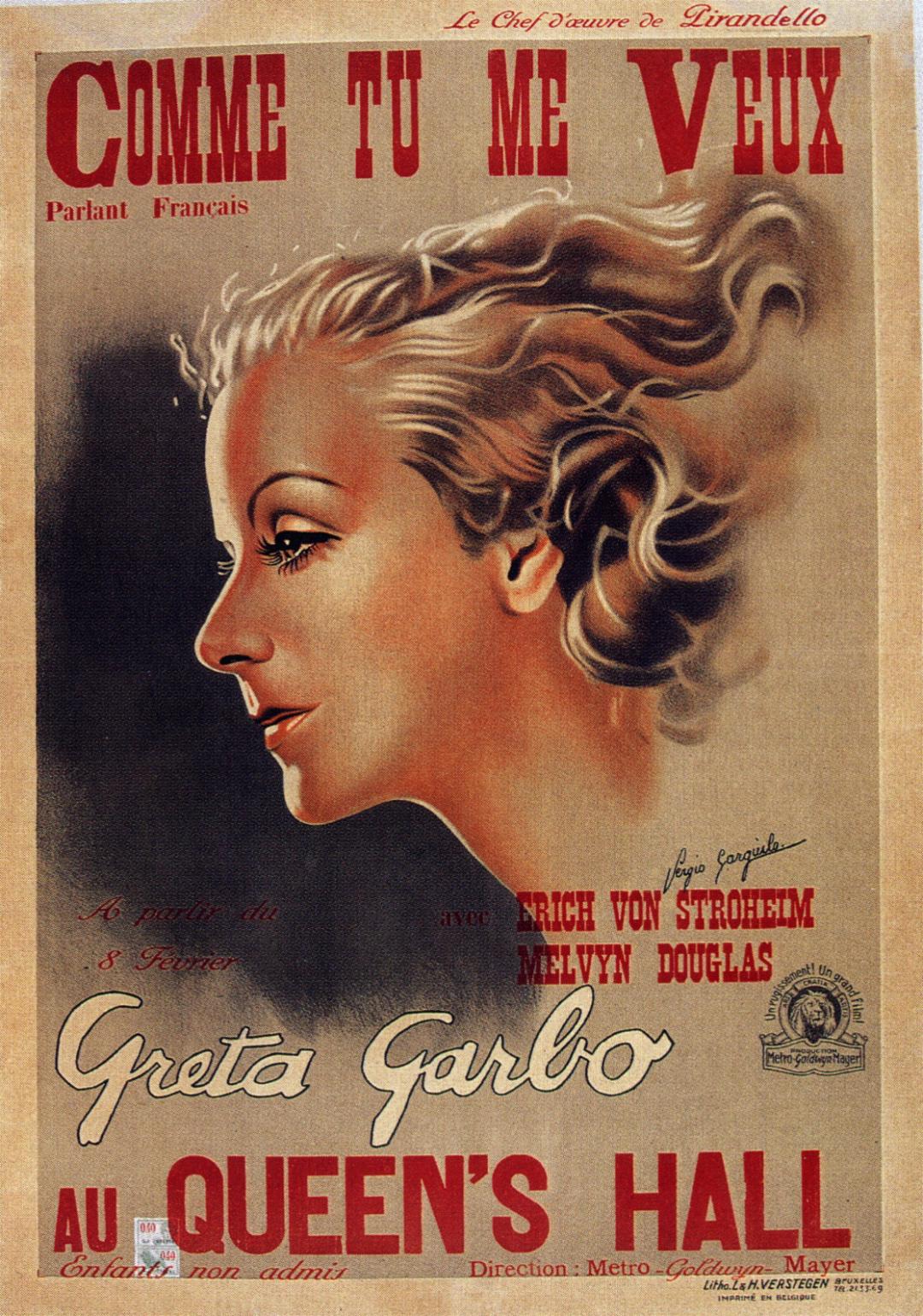 - "Comme tu me veux"-(George Fitzmaurice)-(1932) Drame (Il tournait dans des muets depuis 1915) Films notables : Les poupées du diable(1936), La grande illusion(1937), Les disparus de Saint-Agil(1938), Tempête sur Paris(1939), La foire aux chimères(1945), Boulevard du crépuscule(1950), Minuit quai de Bercy(1951), Alerte au Sud(1953), Série noire(1955)...