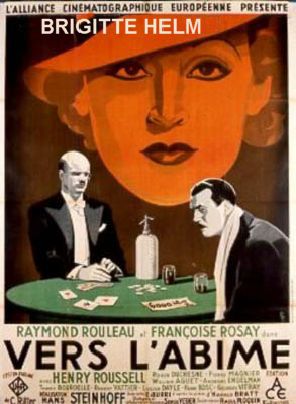 - 'Vers l'abîme"-(Sege Véber)-(1934) Comédie dramatique Films notables : Le Golem(1936), Sept hommes et une femme(1936), Tempête sur l'Asie(1937), Gibraltar(1938),Rappel immédiat(1939) Montmartre sur Seine(1941), La femme perdue(1942), Le Mistral(1942), Adrien(1943), Bob le flambeur(1955)... |