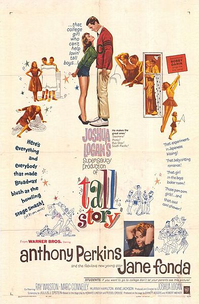 -"Tall Story" (La tête à l'envers)- (Joshua Logan) -(1959) Comédie. Films notables : Les liaisons coupables(1962), Les félins(1964), La poursuite impitoyable(1966), On achève bien les chevaux(1968), Barbarella(1968), Tout va bien(1972), Julia(1977), La maison du lac(1981), Le cavalier électrique(1979), Le Majordome(2013)... |