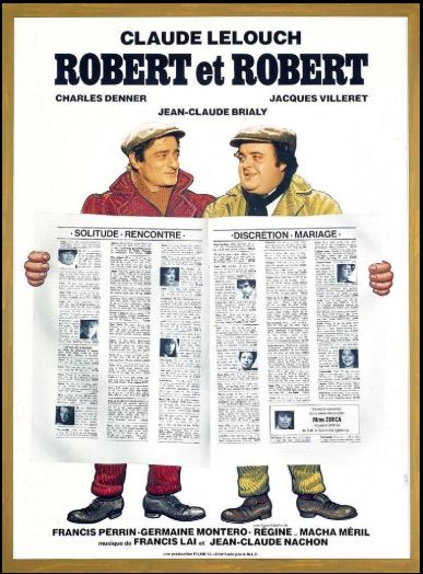 En 1978, Claude Lelouch signe une comédie touchante et désopilante sur les souffrances des timides, la solitude et la difficulté de communiquer! Sur une musique de Francis Lai, le réalisateur d'"Un homme et une femme" laisse éclater son amour pour ses personnages, servi par un incroyable tandem! Le regretté Jacques Villeret, émouvant et drôle, à l'aube de sa carrière prodigieuse, tandis que Charles Denner est admirable en donneur de leçons à la fois frénétique, grave et impertubable! Un beau film sentimental et mélancolique où Villeret a obtenu en 1979, le César du meilleur second rôle masculin pour sa jolie prestation... Avec « Robert et Robert », Lelouch dresse comme un portrait de son acteur principal qui parallèlement et aussi grâce au film est en train de devenir une immense vedette. Lelouch cinéaste à moult facettes dévoile ici sa capacité à dresser un portrait intimiste des petites gens un peu à la façon de Mocky, la poésie et l’empathie en sus. Mais qu’on ne s’y trompe pas c’est bien une vision assez mélancolique de la nature humaine que nous montre le réalisateur à travers la mise à nu de la solitude de la plupart de ceux qui par timidité ne trouvent pas accès à la communication avec autrui. Villeret est l’archétype du timide qui semble s’être fait une raison à devoir renoncer à tous les plaisirs de la vie plutôt que d’affronter le regard de ses congénères. Mais Lelouch qui est un optimiste patenté montre que l’espoir est toujours là et qu’en faisant de ses supposées faiblesses un atout on peut s’ouvrir toutes les voies y compris celle du succès. Si Villeret lui-même a un peu prolongé l’histoire du film par son propre parcours, on sait qu’il n’a jamais pu surmonter complètement son mal être, sombrant dans un alcoolisme qui finira par l’emporter prématurément. Même l’autodérision a ses limites. Souvent drôle le film tire le meilleur parti de ses acteurs avec une mention spéciale pour Jean-Claude Brialy jouant un patron d’agence matrimoniale au grand cœur qui quoique lucide sur sa clientèle fait tout ce qu’il peut pour unir ces pauvres âmes en peine. Juste un petit regret, la tendance de Lelouch à laisser le grand Charles Denner abuser de son jeu enfiévré. Un Lelouch comme on aimerait le voir plus souvent, débarrassé ici de sa fâcheuse tendance à l’emphase, même s’il y cède à deux ou trois reprises,. Sa collaboration avec Francis Lai entamée depuis « Un homme et une femme » le dessert plus souvent qu’à son tour dans cette propension à vouloir faire de chaque moment un transport d’émotion sans pareil. Mais je suppose que les fans absolus du réalisateur penseront exactement le contraire trouvant sans doute qu’il s’agit là de la marque de fabrique de la Lelouch’s touch.
