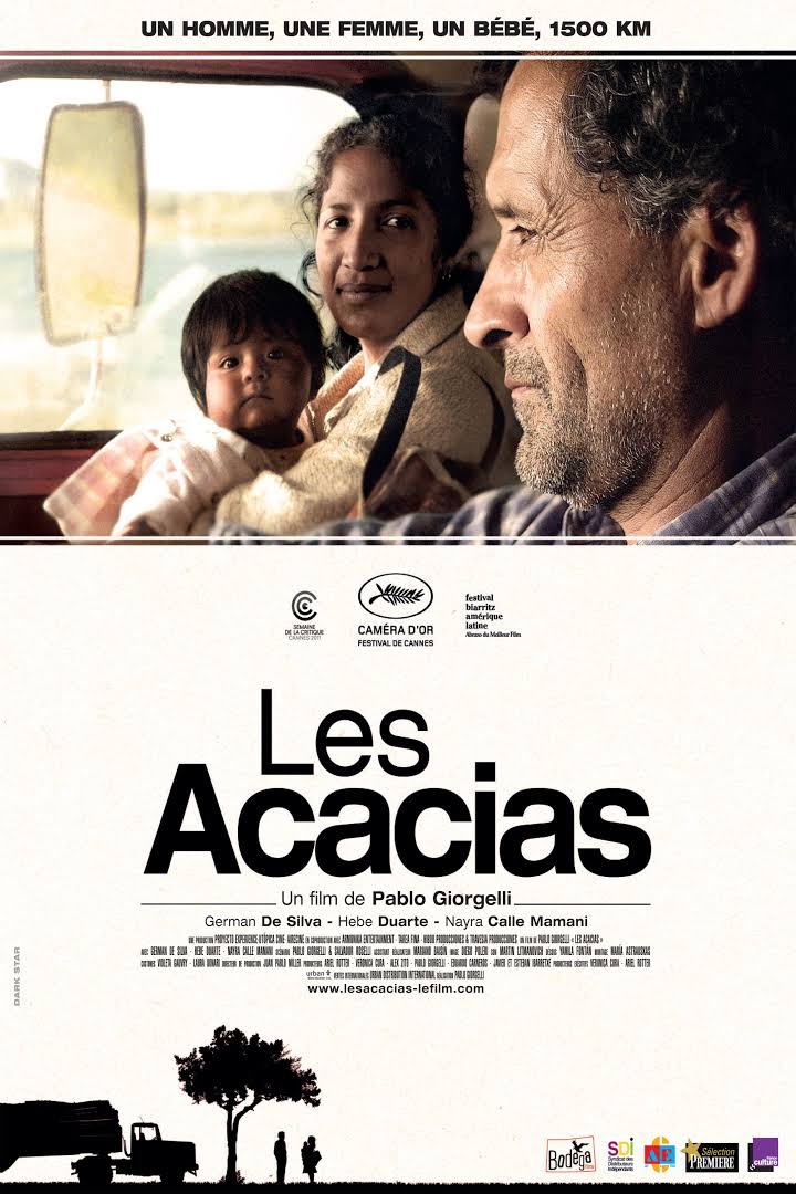 Camera d’or au dernier festival de Cannes (meilleur premier film), Les acacias est un de ces films qui font du bien. C’est un film tout simple, aussi bien dans la mise en scène, minimaliste, que dans le scénario. Le film est comme ses deux personnages, discret, peu bavard, plein de tendresse et d’espoir. Enfin Jacinta est comme ça, pleine d’espoir, elle quitte son pays pour une vie meilleure dans un autre pays. Rubén lui n’attend plus rien de la vie que de conduire son camion. Mais le contact avec cette femme et son bébé viendra-t-il lui redonner cette petite flamme qui manquait à sa vie ? Tout part mal. Même pour nous, les premières minutes sont très ennuyeuses. Les images sont magnifiques mais j’ai failli m’endormir. Et puis petit à petit, on prend place avec eux dans le camion... Voilà un Road-Movie des plus minimalistes. Pas de grand espace, pas de musique folk, pas de rencontre émouvante à la lueur crépusculaire de la prairie argentine. Juste une cabine de camion à travers laquelle on aperçois vaguement ce qui semblent être les beaux paysages argentins, un camionneur bourru, une femme est son gniard. Il faut attendre un bonne dizaine de minute avant de voir apparaître le premier dialogue. On se dit qu'il s'agit juste d'une entrée en matière, que les deux protagonistes vont se montrer un peu plus bavard au film du temps. Que nini ! Pendant 1h30 le camionneur regarde la route, la maman regarde son gamin et le gamin regarde le camionneur. Parfois quelqu'un vient brutalement rompre le silence, le temps de 3 lignes de dialogues, avant de repartir dans une série de champs / contre-champs pendant lesquels on entend que le ronron réconfortant du moteur. Du coup, "les acacias" est un film plutôt monotone, et on ressort du film avec l'impression d'avoir 1h de route dans les pattes. Mais il se dégage ce petit "je ne sais quoi", qui rend le film étrangement supportable. Un film minimaliste, à la fois road-movie (1.500 kilomètres) et huis clos (l'intérieur de la cabine d'un camion). Peu ou quasiment pas de dialogues et pourtant un certain charme pour ne pas dire un charme certain...
