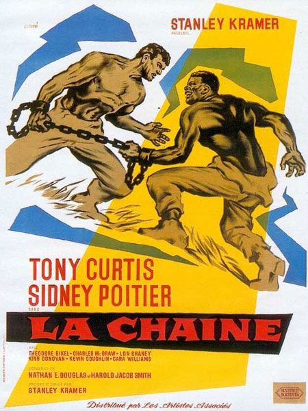 Un vieux film un peu oublié découvert par hasard dans l'avion mais qui n'est pas si mal malgré une certaine naïveté moralisatrice qui peut paraître grossière de nos jours, mais qui ne l'était certainement pas à l'époque surtout aux USA ! Le duo fonctionne entre 2 gueules du cinéma au caractère bien trempé, et un scénario qui aujourd'hui n'a plus vraiment rien d'original... 2 personnages que tout oppose obligés de s'allier jusqu'à se lier d'amitié... Quand le propos vole la vedette! Enchaîner les éléments d’une dualité alors que leurs survies dépendent l’un de l’autre est un point de départ des plus féconds pour un scénario. Le potentiel fulminatoire cohabite avec la nécessité du compromis. C’est ce à quoi sont soumis les deux protagonistes de l’histoire : Deux détenus de couleur de peau différente en cavale mais liés par une chaîne au poignet. Lorsque Cullen le noir remercie Jackson le blanc de l’avoir sauvé en l’extirpant de l’eau, ce dernier lui répond : « Je ne t’ai pas sauvé, je t’ai empêché de me noyer ». À partir d’une réplique aussi assassine, comment pourrait-on imaginer que les deux fugitifs deviendraient des inséparables? C’est là que repose la force du film et tout le reste devient secondaire, y compris certaines maladresses dans les raccords de jeu et de costumes. À travers les péripéties de la chasse à l’homme, les moments de confidences, d’écoute et de support mutuel viennent à bout des préjugés. En liant les deux évadés, le gars des vues les oblige à s’ouvrir l’un à l’autre et force le public à réfléchir sur un enjeu fondamental de la condition humaine. On nous incite également à prendre position entre l’approche coercitive du capitaine Gibbons et le sens des valeurs du shérif Muller. Lorsque ce dernier se retrouve seul devant les fuyards sans défense à la toute fin, il fait face au même dilemme que le spectateur : Faire respecter la loi et ramener les prisonniers à la maison ou les laisser filer en applaudissant la leçon d’humanisme qu’ils viennent de nous donner. C’est un film que l’on ne ferait plus en 2019, du moins de cette façon mais à sa sortie il avait été très apprécié. Les outrances qui nous choquent ont été très bien acceptées par le public. Tout est démesuré, Kramer ne se retient pas et il utilise le chaud et le froid sans aucune finesse…Ce n’est pas toujours supportable d’autant que tous les acteurs ne sont pas du même niveau. La femme par exemple joue extrêmement mal et on à du mal à discerner ce qui est le plus fort chez elle, son racisme ou son égoïsme. La chanson de Poitier passe mal dans un tel scénario malgré le talent du chanteur. La mise en scène est belle et spectaculaire et les extérieurs bien choisis, le noir est blanc est indispensable, d’ailleurs ce film est un des plus édifiant sur le sujet. Un film assez simple dans sa conception et son propos, mais bien construit, très solide.IL doit beaucoup à la parfaite interprétation des deux protagonistes : Tony Curtis,et Sydney Poitier , absolument impeccables. Nous sommes dans le contexte ségrégationniste américain des années 50 ,et le film est bien sûr antiraciste. Un bon suspens et des seconds rôles bien sentis. Le final est très émouvant..