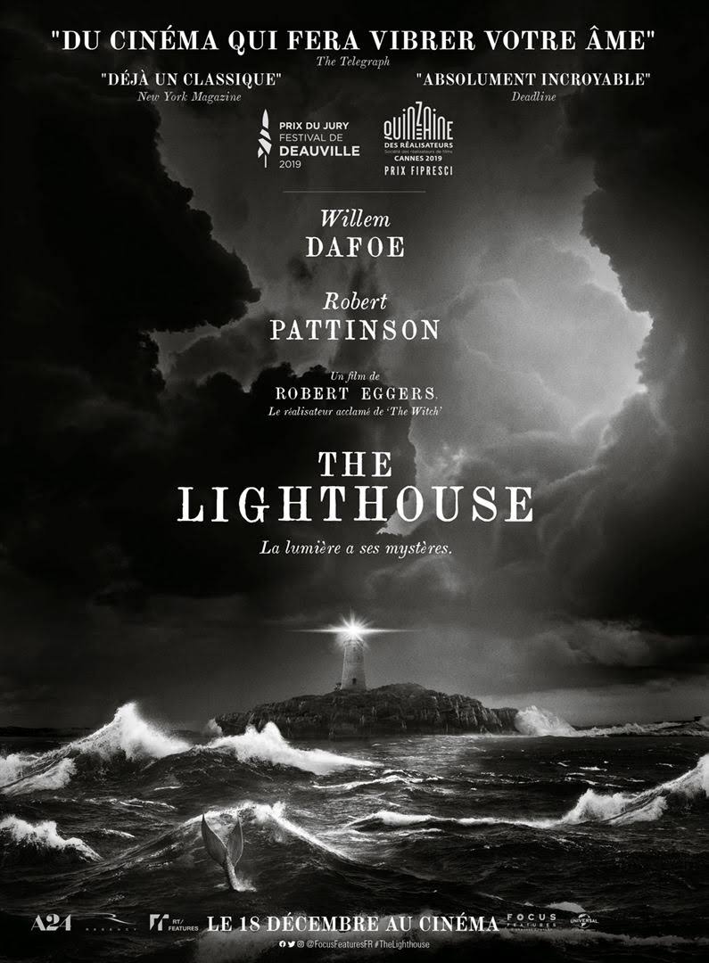 Le film compose un puissant éloge des pouvoirs hallucinatoires de la fiction, capable de recréer un microcosme là où il n’y a qu’isolement et souffrance. L’art devient le pendant de la schizophrénie. La splendeur de chacun de ses plans envoûte un spectateur qui n’en croit pas ses yeux, avait oublié que le cinéma pouvait atteindre une telle beauté noire, assassinée. Porté par deux acteurs au sommet, aussi percutants que terrifiants, The Lighthouse est un puits de lumière, un kaléidoscope d’images cauchemardesques et fascinantes qui grave la rétine et attrape le spectateur pour ne le lâcher qu’au générique de fin. Film tout bonnement hallucinant, qui se place in-extremis dans le peloton de tête des meilleurs films de l'année. Et sur tous les plans. La mise en scène est aussi virtuose que grandiose. Le scénario, fort, puissant, sombre, ambigu, nous concocte un récit aussi délirant que terrifiant pour un huis-clos aussi étouffant que claustrophobe. The Lighthouse, aussi halluciné qu’hallucinant, prend une place toute naturelle dans ma liste des films qui se méritent. Fascinant et hypnotique, un choc inattendu qui restera dans les annales. Une expérience visuelle et sensorielle unique. Un chef d’œuvre. La vraie réussite du film réside dans le fait qu'on ne sait franchement jamais si l'un des deux manipule l'autre et si il y a vraiment un secret ?! Ces questionnements légitimes n'ont jamais franchement de réponses, laissant le spectateur dans un flou inconfortable et malsain mais terriblement jubilatoire. La force des images fait le reste. La fin monte d'un cran mais perd le spectateur encore plus, on en comprend plus tout à fait ce qui se passe, et où a voulu nous mener Robert Eggers. En prime deux performances dantesques de deux acteurs au sommet. Incroyable huis clos surnaturelle, réalisé de main de maitre par Robert Eggers, déjà acclamé pour The Witch et faisant parti d'une génération de cinéaste novateur avec notamment Ari Aster; Jordan Peele ou David Robert Mitchell. Les performances de Dafoe et Pattinson sont dantesques. Le vent, la pluie, la foudre, les éclairs et le tonnerre de Zeus frappent sans relâche les personnages de ce huis clos en proie à une lutte sado masochiste à l’homosexualité latente. Ici, la folie, la crasse, la puanteur dans un vacarme incessant et oppressant, une tragédie empreinte de Mythologie grecque, des tableaux sublimes en noir et blanc, des dialogues Shakespeariens. Tout est surprenant dans ce chef d’oeuvres, le format, la couleur, la photo, la mise en scène dramatique où l’hédonisme et l’onanisme surprennent tour à tour et l’on se demande où les protagonistes nous entraînent et ce que l’on est en train de voir. Un cinéma d’art et d’essais des années 70. Sûrement pas un blockbuster, mais sans doute Brecht ne le démentirait pas; une œuvre d’art totalement à part… Juste excellent, film anti commercial qui laisse une grosse sensation de malaise. Allez le voir. C’est bon de voir que de superbes films d’horreur psychologique sont encore faits aujourd’hui.