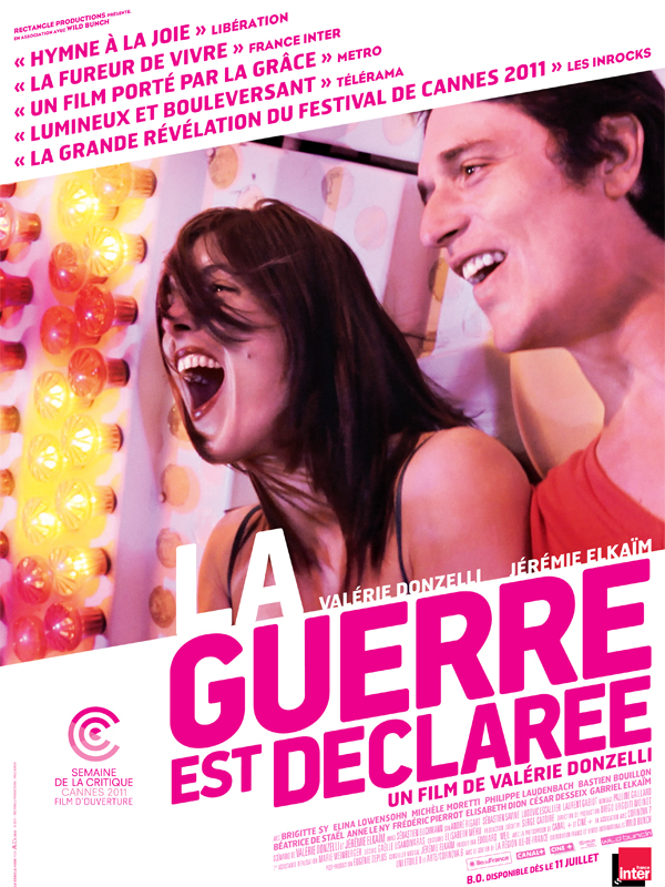 Cette histoire de la vie quotidienne est réellement captivante. Et même si l’on a du mal à adhérer aux différentes réactions du couple formé par Roméo et Juliette, face à la terrible maladie de leur fils Adam, nous ne pouvons que nous laisser emporter par leur histoire d’amour. De plus, l’incontestable talent de l’actrice et réalisatrice Valérie Donzelli nous offre un cinéma libre, moderne et ébouriffant, qui nous fait passer du rire aux pleurs, de la chanson à la poésie en un claquement de doigts. Un film exceptionnel. Une énergie et une soif de vivre hallucinants. Donzelli a un talent fou. Elle crève l'écran devant et derrière. Quelques petits effets un peu trop branchouilles ne nuisent pas à l'ensemble de cette histoire bouleversante. Bravo Un film plutôt novateur dans son genre. Traitant d’un sujet dramatique et qui touche de plus en plus de personnes sur Terre, le film a réussi à ne pas sombrer dans le pathos et c’est plutôt une bonne chose. Il y a de bonnes idées, de bons dialogues, un message d’espoir à retenir et l’histoire en elle-même est très belle. Le long-métrage est touchant, émouvant et malgré quelques maladresses, l’ensemble est plutôt réussi. La mise en scène de Valérie Donzelli est soignée, je pense que cette réalisatrice à du potentiel. Du côté des acteurs, Valérie Donzelli et Jérémie Elkaïm sont convaincants dans leurs rôles, ce n’est pas forcement évident de jouer dans ce type de registre à leurs âges, c’est donc réussi. Bref, c’est un film à voir… Une oeuvre autobiographique tellement juste qu'on a du mal à y trouver les mots. La guerre est déclarée est une leçon de courage, un fantastique combat remarquablement mis en scène et porté par une bande musicale qui colle parfaitement au sentiment qui se dégage. Se donner de la force ensemble, ne retenir que le positif, ne pas oublier de sourire... Grâce à leur vécu, Valérie Donzelli et Jérémie Elkaïm sont bouleversants de sincérité... Un film qui se passe de commentaires. Tout ce qu'il faut faire c'est aller le voir. La force authentique et brute de ce film transporte à elle seule. Pas de fioritures, pas d'excés de mélo, pas de situations alambiquées. De la vie, belle, cruelle, drôle, tragique, fantasque. Des acteurs au sommet de leur art, en contrôle pudique et rage de vivre. Jérémy Elkaim et Valerie Donzelli font respirer ou haleter les images mêmes dans les moments de creux. Deux présences vibrantes de vérité. Quelques scènes où on se sent en apnée, d'autres où l'on relâche l'enclume qui nous pèse sur le cœur. J'ai eu l'impression de vivre avec eux le chemin d'un combat. DU TRÈS GRAND CINÉMA FRANÇAIS Parfait, génial. Perso j'adore ces films où t'as l'impression d'être dedans. C'est le thème qui veut ça mais surtout la mise en scène, la complicité des acteurs, le scénario qu'avance crescendo . On a envie de les aider, de pleurer, de rire, de courir avec eux. Je sais pas si ceux qui ne veulent pas d'enfants en voudront davantage après visionnage, par contre tout le monde s'accordera pour dire qu'on a davantage envie de bouffer la vie à pleine dents. Il n'y a pas eu d'anti-dépresseur de telle qualité en France depuis longtemps. Le parcours acharné d'un couple qui veut guérir son enfant. Un ton libre et direct qui n'a pas peur de nous montrer la douleur mais également les moments de répit ou de respiration nécessaires et obligés pour survivre: sortie en boîte de nuit, course sur la plage, auto tamponneuses: des moments de grâce pour supporter la solitude face à la maladie. Touchant et sensible.