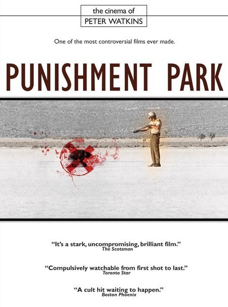 Peter Watkins est connu pour avoir réalisé des films engagés. C'est le cas avec ce "Punishment Park". Ce qui reste sans conteste la plus grande réussite du film, c'est le choix de mise en scène de Watkins : le faux-documentaire. Cela rend l'horreur plus réaliste et lui donne une dimension concrète, et on a plus souvent l'impression de regarder un documentaire qu'un drame fictif. Ce choix est justifié par la volonté de Watkins de créer un pamphlet politique contre la guerre du Viet-Nâm et la propagande orchestrée par le gouvernement des États-Unis, utilisée pour faire croire à ses citoyens que cette guerre est nécessaire pour l'accomplissement de la nation. Ce qu'on pourra reprocher à ce long-métrage, c'est surtout le manque de subtilité de la dénonciation qui nous est rabâchée pendant 80 minutes et son manque de rythme, qui pourra en lasser plus d'un, même si la scène finale restera gravée dans la mémoire par sa violence gratuite et injuste. Intéressant. Punishment Park est réellement un film atypique qui est à voir par curiosité si vous êtes un vrai cinéphile, mais ne vous attendez pas à découvrir un grand film. Personnellement je trouve l'histoire de ce faux documentaire exagérée par moments, pourtant je suis quand même satisfait d'avoir vu cet étrange film. Tout n'est pas blanc ni noir dans ce film, la caricature est tout de même poussée à son extrême, que ce soit au niveau du jury que des policiers. Ce film crée à lui seul une paranoïa omniprésente d'un patriotisme presque religieux, ce qui franchement n'était pas de mon goût. Mais néanmoins ce qui m'a le plus intéressé au travers des dialogues, c'est celui de la fin entre les policiers et les caméramen. En effet ce dialogue a lui seul représente étonnemment bien la relation qui existe depuis longtemps, entre le gouvernement américain et le reste du monde. C'est fermez vos gueules, n'oubliez pas qui nous sommes, filmez si ça vous arrange mais au final ça ne changera rien, car nous sommes qui vous savez avec le pouvoir que vous connaissez. Mis à part ça le film m'a un peu saoulé...