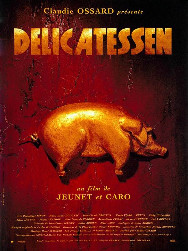 Il aura fallu près de 10 ans pour Marc Caro et Jean-Pierre Jeunet pour trouver un producteur qui oserait financer un film aussi décalé... Mais il est là, et 10 ans après il est toujours aussi avant-gardiste que ce soit sur le domaine de la réalisation, de l'image ou du son. Indescriptible, il faut le voir pour le croire. En dire plus serait un sacrilège : c'est tout simplement un chef d'oeuvre. Avec Delicatessen, Jean-Pierre Jeunet et Marc Caro se lâchent et réalisent un film hors du commun ; une Comédie délirante à souhait aux décors dantesques. Le montage est astucieux et le scénario audacieux : ils nous offrent un univers fantastique, une bonnes quantité de surprises drôles et cauchemardesques, et une belle troupe de personnages singuliers : Aurore la suicidaire ingénieuse (Sylvie Laguna), Robert le fabriquant de boites à Meuh (Rufus), Mr Potin l'éleveur de grenouilles et d'escargots en chambre (Howard Vernon) … La belle BO de Carlos d' Alessio et la qualité de jeu des comédiens cautionnent grandement le succès de ce film avec en tète d'affiche Jean-Claude Dreyfus. Avec charisme et efficacité, il effectue une énorme prestation d'acteur. Belle présence également du couple Marie-Laure Dougnac - Dominique Pinon qui met avec talent une belle touche d'humour et de sensibilité à l'histoire. Avec un fil conducteur plus solide, ce film eut été un chef d'œuvre. Néanmoins, il mérite amplement les 4 César reçus en 1992. Déjanté et surprenant : nul doute que ce "Délicatessen" avait dû être choc lors de sa sortie, d'autant que sa vision aujourd'hui est tout aussi puissante. Disposant d'une dimension esthétique incroyable et pour le moins originale, le film brille également par son côté décalé et grinçant, certes tournant légèrement parfois à la suite de sketchs, mais tellement savoureux la plupart du temps que cela passe au final sans souci. Reste un scénario légèrement discutable, d'autant que la dernière partie part pour le moins en vrille (ce qui n'est pas forcément un reproche tant elle peut néanmoins apparaître jubilatoire à bien des égards), mais qu'importe : l'expérience est au final tellement enrichissante et les personnages incroyables qu'on ne peut que vous encourager à découvrir cette oeuvre du meilleur effet. Une réussite. Tout simplement un pur chef d'oeuvre qui se distingue d'abord pour l'un des castings les plus impressionnants du cinéma français avec sa galerie de vraies gueules comme Dominique Pinon ou Jean-Claude Dreyfus puis pour la qualité exceptionnelle de sa mise en scène. Une intrigue à tiroirs magnifiquement complexe, cohérente de bout en bout, une ambiance très prenante, lourde embellie par la riche photographie de Darius Khondji, ce qui est aussi la marque de fabrique des films de Jean-Pierre Jeunet. Une sorte d'OVNI saisissant, un peu lent mais magnétique. Du cinéma comme je l'aime, malin et inventif.