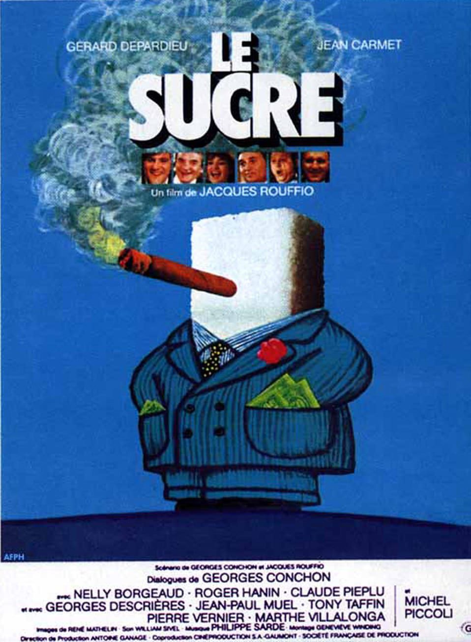 Le Sucre » pourrait aussi s’appeler « la Bourse pour les Nuls » ! Le sujet est toujours autant d’actualité près de 40 ans plus tard ! C’est aussi le reflet d’une époque (fin des années ’70) où les professions libérales masculines parisiennes fréquentaient les prostituées, uniquement caucasiennes, au bois de Boulogne, et allaient voir des films porno dans les cinémas de Strasbourg / Saint-Denis. « Le Sucre », c’est avant tout, un casting fourni et de première qualité. C’est enfin un film avec quelques idées originales dans la réalisation et un dénouement audacieux et surprenant. Les mises en scène de Jacques Rouffio ne sont pas réputées pour leur rigueur et leur finesse. Ce film n'est pas l'exception qui confirme la règle. Les dialogues manquent de piquant, Roger Hanin en fait des mégatonnes (mais bon avec lui c'est une habitude!) et il y a quelques moments de flottement. Mais la complicité très apparente entre Jean Carmet et Gérard Depardieu emporte tout sur son passage et on peut se plaire à souligner la pertinence prophétique du scénario. Par exemple, après une catastrophe boursière les banques sont bizarrement épargnées et ce sont les petits spéculateurs qui prennent tout sur la gueule. Toute ressemblance entre ce scénario fictif et des événements récents sont... Une satire acide sur le monde des spéculateurs, des traders, des boursiers et autres boursicoteurs, actionnaires et banquiers et politiques véreux. Un film intemporel qui résonne plus que jamais en ces jours perturbés. Le couple Depardieu-Carmet est savoureux. Comme il le sera plus tard dans l’excellent « Buffet froid » au côté de Bernard Blier. Jacques Rouffio nous pond un film plus léger que « Sept morts sur ordonnance » mais sous des dehors de la comédie, son « sucre » n’en demeure pas moins saignant et salé ! Si la mise en scène a vieilli par moments, elle est compensée par le jeu des acteurs, jubilatoire pour le spectateur que je suis. A (re)découvrir.
