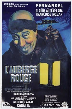 Fernandel fait du Fernandel, l'histoire est à vrai dire plutôt prometteuse, mais l'humour ne fonctionne jamais vraiment, tant il est forcé, poussif, naïf, et parfois presque grotesque. Et d'un point de vue artistique, cette "Auberge rouge", quand bien même elle n'a pas trop mal vieilli, reste très académique, et on se devait d'attendre plus de ce Autant-Lara. Cette ribambelle de personnages hauts en couleurs et plus abrutis et caricaturaux les uns que les autres est somme toute sympathique et divertissante, mais ça ne va hélas pas plus loin. "L'Auberge rouge"(1951),en dépit de son titre,n'a qu'un lointain rapport avec le roman d'Honoré de Balzac. Son pitch de départ le destine à être une comédie cocasse et vaguement caustique. Une auberge isolée sur une colline enneigée en Ardèche. Des aubergistes et leur majordome noir qui tuent les voyageurs après les avoir empoisonnés. Un prêtre capucin et froussard partagé entre sa réserve sur le sceau de la confession et son envie de sauver les malheureux. Le film de Claude Autant-Lara met tout ces éléments en place,avant de verser plus ostensiblement dans la farce bouffonne. Plusieurs choses dérangent ici comme le surjeu permanent de Fernandel et plus généralement la théâtralisation extrême de l'ensemble. La morbidité de l'histoire est noyée dans une sorte de vaudeville limité. Ceci étant dit,il est savoureux de noter l'aspect anti-clérical se mêlant au respect des us et coutumes du XIXeme siècle. Et puis,la chanson d'Yves Montand "La Complainte du voyageur" est éternelle. Ce sont des films qui marquent quand on les voit gamin. C'est du bon cinéma, le seul hic,ça a pas mal vieilli tout de même.