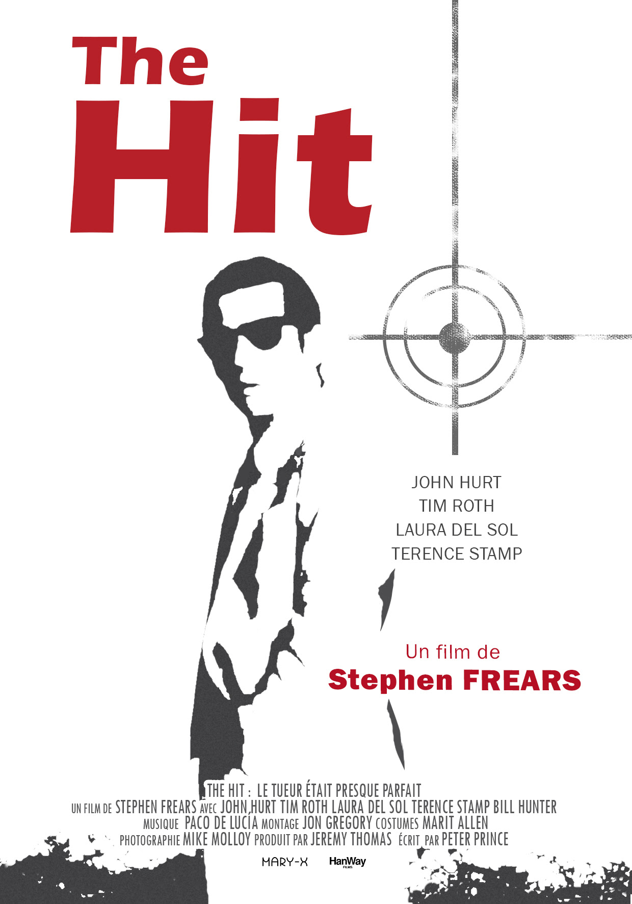 Je ne connaissais pas à Frears cette nonchalance, cette liberté de ton, cette lymphatie. Il pèse sur ce film, une ambiance décontractée, désuète, en décalage avec la réalité, plutôt plaisante. Et même si les motivations des personnages paraissent parfois un peu trop élastiques, et que la linéarité de la route devient celle du film, on passe un bon moment devant ce polar atypique et racé. Deuxième film de Stephen Frears, "The hit" (commercialisé aussi sous le titre "Les nouveaux tueurs") réunit de très bons acteurs et joue beaucoup plus sur l'ambiance, la psychologie, que sur le rythme et le suspense. Plutôt lent, ce road-movie se veut une réflexion sur la peur de la mort. Si le film présente des qualités, le comportement plutôt curieux de tous les personnages est son principal défaut. Ce deuxième film de Stephen Frears, basé essentiellement sur la psychologie des personnages devant la mort, est un road-movie à la distribution prestigieuse mais au rythme inégal. Cette virée en compagnie de ces malfrats permet d'assister notamment aux débuts de Tim Roth dans le rôle d'un apprenti tueur immature. Le scénario aurait mérité sans doute un plus grand développement. "The Hit" se présente comme un film honnête mais qui manque de souffle par moment. Je l'avais vu il y a quelques années ( mais sous le titre de "KILLER$" ) et j'avais été emballé par la mise en scène. La chose qui m'avait particulièrement marqué était la tête de Tim Roth que je n'avais pas du tout reconnu. Le scénario quand à lui, bien que pas très original, reste accrocheur: Willie Parker ( Terence Stamp ), un truand anglais, dénonce ses complices en échange de sa liberté. Il part donc vivre en Espagne. Dix ans plus tard, ses ex-complices sortent de prison; ils engagent deux "professionnels" pour le capturer: Braddock ( John Hurt ), le vétéran, et Myron ( Tim Roth ), dont c'est la première mission. Ils enlèvent Parker et traversent l'Espagne en direction de Paris, poursuivis par la police. Evidemment c'est du déjà vu. Mais je garde un bon souvenir de The Hit. Le premier film de Stephen Frears est tout simplement, au vu de sa carrière future, une légère déception. Certes, le film bénéficie d’une belle qualité de photographies et d’une pléiade d’acteurs brillants mais caricaturaux (John Hurt et Terence Stamp en font trop), une Laura Del Sol aux beaux gros seins mais peu éveillée. Mais la stylisation extrême du film peut parfois lasser. Le dénouement du film est surprenant et la vision de l’Espagne très belle mais le film est couçi couça bien et parce que mélangeant plusieurs genres cinématographiques.