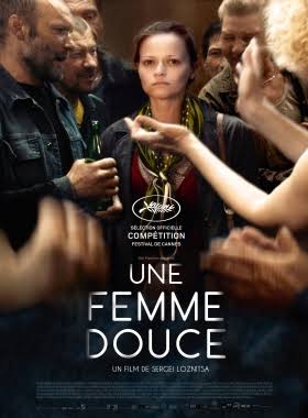 L'actrice principale est parfaite et il y a énormément de suspens car on se demande comment l'héroïne va arriver à se sortir de cette situation hallucinante. Points négatifs : ce film est beaucoup trop long (une durée de 2 h 20 c'est beaucoup trop long pour un sujet pénible et difficile), l'actrice principale bien que parfaite tire la gueule tout le long (même si on la comprend car elle vit une situation très difficile), toutes les situations que rencontre cette dame sont particulièrement éprouvantes et dures. Pour résumer, le sujet est intéressant, le suspens est là, l'actrice joue très bien mais quelle histoire difficile à visionner et éprouvante. Le titre reprend celui du film que Robert Bresson avait réalisé en 1969 avec Dominique Sanda et qui était une adaptation assez fidèle de la nouvelle "La douce" de Fiodor Dostoïevski. Concernant le film de Sergei Loznitsa, il parait difficile d'évoquer une nouvelle adaptation de cette nouvelle, ce que le réalisateur reconnait d'ailleurs. En fait, ce film est une charge féroce de la Russie d'aujourd'hui, voire de la Russie de toujours. On est là dans un monde kafkaïen et inhumain où règnent la corruption et la médiocrité et on suit les rebuffades subies par une jeune femme, plus passive que douce, qui a vu revenir un colis envoyé à son mari incarcéré et qui prend la décision d'aller le porter en mains propres. Reconnaissons que "Une femme douce" n'a pas la force de "My Joy" et de "Dans la brume". Ce n'est pas pour autant un film mineur ! Il y a des scènes magnifiques dans ce road-movie particulier, en particulier une qui se déroule dans un autocar. Par contre, on ne peut que regretter la scène du rêve qui envahit la fin du film, une scène qui se veut félinienne mais qui n'apporte rien et qui retire ... un peu !