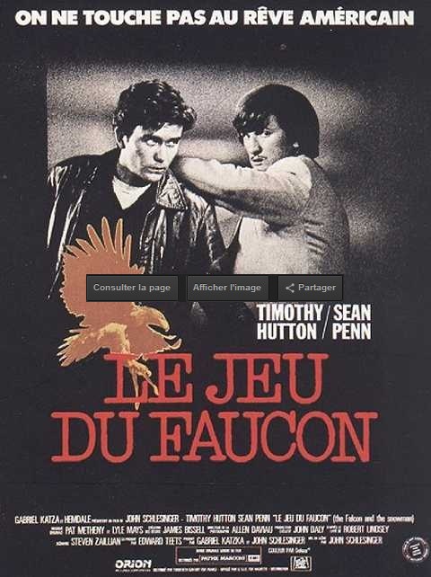 Très bon film de Schlesinger, à contre courant des thrillers paranoïaques des années 70. On a affaire à un ton qui est atypique avec des touches d'humour mettant en exergue la naïveté des deux héros. Le manque de sérieux de la succursale de la CIA où travaille Chris et les quiproquos avec l'ambassade russe sont traités avec une légèreté propre à la comédie. Le décalage entre les deux familles bien intégrées socialement et la situation des deux héros est aussi intéressant. Un film sur la paranoïa post Watergate à travers un point de vue des années 80 qui maintient notre intérêt de bout en bout sans aucune scène d'action. Une réussite! Voila un film peu connue pourtant signé john Schlesinger avec sean Penn dans un de ses premiers grand rôles et le trop méconnue timothy Hutton ( vraiment bon dans le rôle). On se retrouve avec un film d'espionnage vraiment sombre et desenchanté qui n'epargne ni les americains ni les russes ( guerre froide oblige ). L'oeuvre souffre de quelque défauts mais le savoir faire du réalisateur nous permet de passer un bon moment. Si le film a un peu vieilli au niveau image et ambiance des années 80, il en reste pour le moins intéressant. Le scénario est habile et tient bien en haleine jusqu'au bout, la réalisation est honnête. L'intérêt principal vient de l'interprétation. Timothy Hutton trois ans après son Oscar pour Des gens comme les autres de Robert Redford trouve ici un très beau rôle. Sa carrière très en dent de scie n'a jamais vraiment décollé ensuite (Oscar trop tôt ?). Sean Penn (lui vingt ans avant son Oscar !), est au tout début de sa carrière et confirmera largement par la suite toutes les qualités d'acteur que l'on découvre dans ce film. Leur duo est très convaincant et fonctionne parfaitement. Un bon thriller d'espionnage, un rêve américain légèrement égratigné, un des meilleurs films de John Schlesinger, décédé en 2003, peu connu et peu diffusé à la télévison. Tres bon film. Il a un peu vieilli mais s'inspire de faits reels. Le drame de la desillusion pousse un jeune "stagiaire" patriote à vendre des secrets d'états US à l'Union sovietique. Il grandit désillusionné et s'enferme dans les rouages de l'espionnage en compagnie de son ami d'enfance. Un très beau film. Bon polar à la sauce 80 s . Paranoïaque comme l époque et très bien mené par les comédiens Penn et Hutton ( trop rare ) . Le plus intéressant ici reste sans doute le rapport entre les deux amis d enfance. Je ne suis pas d'accord pour dire qu'on ne comprend pas les raisons profondes du Faucon, historiquement cela se passe juste après le scandale du Watergate, et il y a une scène où son père essaie de se rapprocher de lui, mais il n'en veut pas. Il se cherche un peu, ne sait trop ce qu'il veut faire et cette idée de vendre des renseignements est une manière de se venger d'une Amérique, dont il est déçu. Pourquoi trahit-elle un de ses alliés comme l'Australie ? L'interprétation des deux jeunes acteurs que sont à l'époque Timothy Hutton et Sean Penn est très à la hauteur. Le film est sorti dans les années 80 mais relate une histoire des années 70. Par contre, musicalement nous sommes davantage dans les années 80, cette trame est vraiment très poignante. Non, moi j'ai beaucoup aimé ce film, je ne vois pas ce qui cloche, c'est d'un réalisateur qui nous a donné le mémorable Midnight Cowboy, encore un duo de jeunes désillusionnés. De revoir ce film aujourd'hui me fait dire : Si on pouvait savoir autant de choses à cette époque, imaginez ce que la CIA doit savoir de choses aujourd'hui...