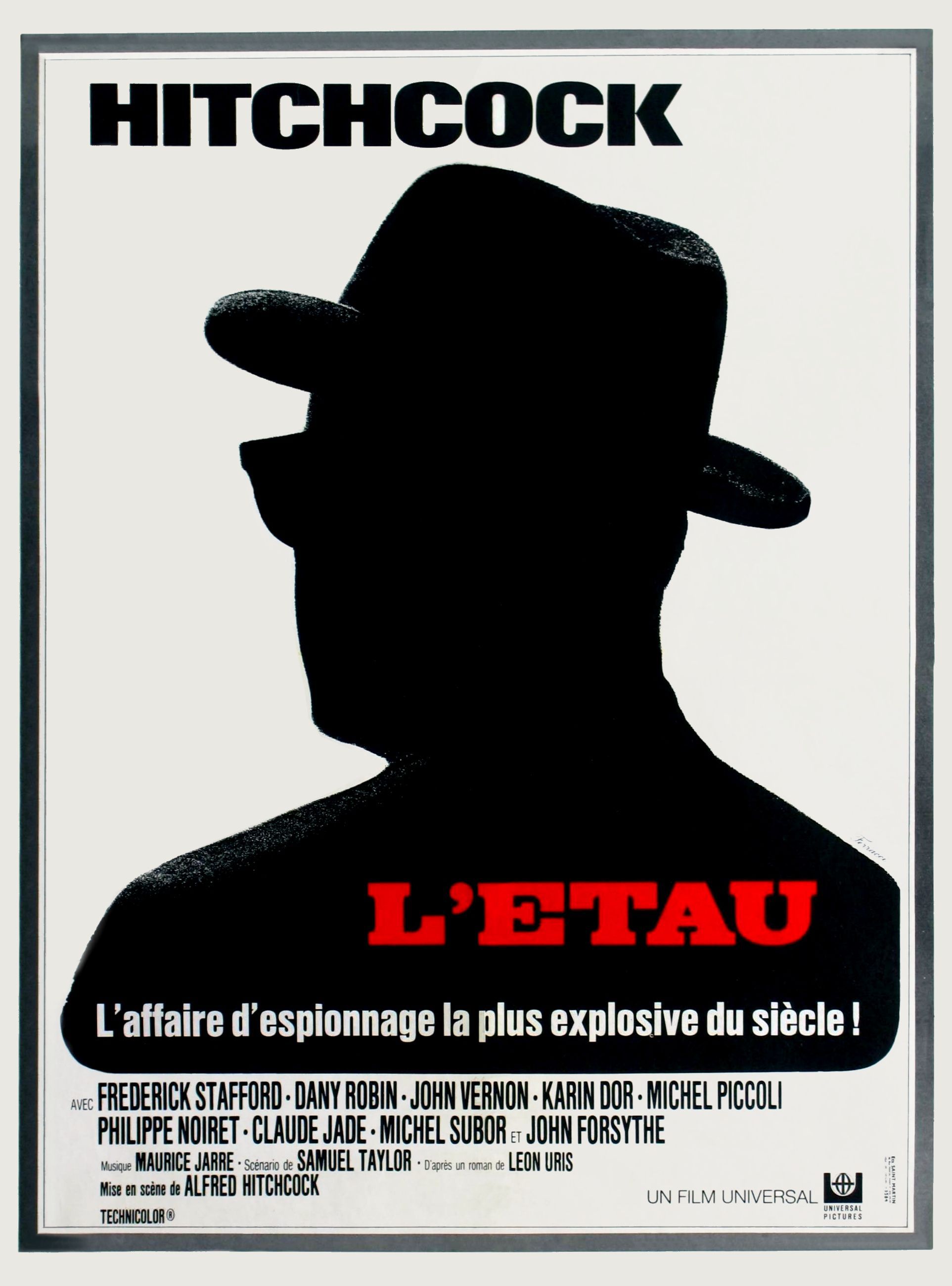 Si dans l'absolu "L'Etau" n'a rien de honteux et se regarde sans déplaisir, il s'avère néanmoins une grosse déception surtout vu le nom du réalisateur. Le maitre nous fait suivre des agents Américains qui font évader un haut fonctionnaire Russes et sa famille pour en tirer des informations et leurs périples vont les emmener entre États-Unis, Cuba et France. Pourtant l'idée est intéréssante, c'est très teinté guerre froide, mais Hitchcock avait réussi à nous captiver avec "Le rideau déchiré", mais là ça ne marche pas complètement, et hormis la parti à Cuba qui est superbement faite, le reste est parfois étiré inutilement et surtout ne passionne guère. C'est dommage, j'ai vu énormément de films de Hitchcock et c'est difficile de croire que c'est l'auteur de "Rebecca", "Les Enchainés", "Psycho" ou encore des films comme "Une femme disparait" qui ait fait ce film. A éviter pour ne pas être déçu par Hitchcock. Un début réussi au Danemark et une excellente BO de Maurice Jarre, voici les deux seules choses que j'ai trouvé de bien dans ce film très médiocre. L'intrigue n'est pas du tout convaincante, le film est globalement ennuyeux, les personnages incarnés par des acteurs fades n'ont pas la moindre consistance et le final est bâclé. Voici ce que j'ai envie de dire sur ce film qui est pour moi le plus mauvais d'Alfred Hitchcock, et sur la base que j'ai vu pratiquement 40 films du réalisateur. Difficile de croire que c'est au même réalisateur qu'on doit des chefs d'oeuvre comme "La Mort aux trousses" ou "Les Enchainés", déplorable. C’est une rare fosse note dans la partition d’Hitchcock, mais c’est quand même une fausse note. Le récit noué de fils blancs, pas très précis, certainement confus, court-circuite un suspense semblable à une ampoule défaillante qui clignote. Le casting prestigieux, quant à lui, ressemble à de beaux oiseaux immobiles qui n’ont rien à becqueter dans une cage en acier. Tourné entre " Le Rideau Déchiré " et " Frenzy ", ce 55ème long métrage d'Alfred Hitchcock est clairement l'un des moins réussi du réalisateur. Cette histoire d'espionnage possède un premier quart d'heure assez intéressant, par contre le reste de l'oeuvre se suit avec beaucoup d'ennui, et à part sur certaines séqeunces, on arrive jamais à retrouver le style qui à fait la renommer du metteur en scène. En plus, l'ensemble de la distribution n'est vraiment pas à la hauteur, notamment en ce qui concerne Frederick Stafford qui manque cruellement de charisme par rapport au personnage de André Devereaux, et qui est à mon sens une grossière erreur au niveau du casting. En fait, les seuls atouts de ce film sont à mettre à l'actif d'une part de Maurice Jarre qui signe un partition musicale vraiment agréable à écouter, et d'autre part de Jack Hildyard qui nous offre une photographie assez soignée dans son ensemble. Il s'agit donc au final d'une oeuvre clairement décevante de la part d'un tel metteur en scène et que l'on à du mal à visionner jusqu'à la fin.