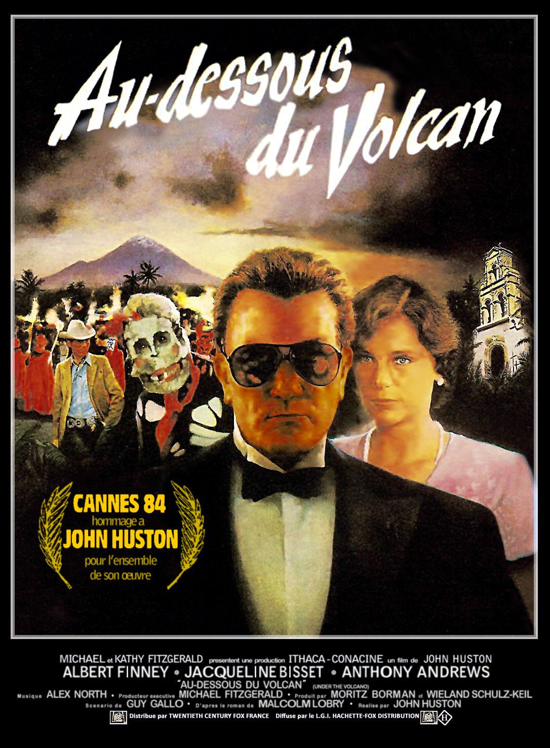 John Huston est un formidable adaptateur de grandes oeuvres littéraires à l'écran. J'ai lu le roman il y a déjà pas mal d'années. On peut dire schématiquement qu'il joue sur trois registres : l'intime, un couple qui se défait sans rémission, l'Histoire, la montée des fascisme et la proximité de la guerre, et puis toute une construction du récit et un symbolisme ésotériques sous jacent. On pourrait dire que l'alcoolisme lie le les premier et dernier aspects. Le film parvient à restituer formidablement les deux premiers, et, plus extraordinaire, parvient aussi à restituer quelque chose du dernier. Je ne crois pas que les plus érudits Lowriens trouveraient à mépriser l'"Au dessous du volcan" de J. Huston. Un grand film crépusculaire, porté par un hallucinant Albert Finney. Malgré des longueurs, Huston parvient à restituer l'incroyable humanité d'un personnage qui porte sur ses épaules un condensé absolu de l'angoisse existentielle. Un film qui regarde la mort dans les yeux, sans rémission. Ce film prend directement au coeur... Incommunicabilité, enfermement, désespoir, vacuité... Les images sont magnifiques, le Mexique sublimé ! Même si, dans la seconde partie du film, l'éthylisme d'Albert Finney devient un peu lourd et la fin trop tragico-romanesque... L'action d'"Au-dessous du volcan" respecte l'unité de temps et de lieu. Elle se déroule le 2 novembre 1938, le Jour des morts, à Cuernavaca au Mexique. Elle a pour héros un consul britannique dont l'alcoolisme pathologique a causé la perte de sa charge. Geoffrey Firmin (Albert Finney) a sombré dans la boisson parce que sa femme Yvonne (Jacqueline Bisset) l'a quitté, parce qu'aussi il a vécu durant la Première guerre mondiale un traumatisme jamais cicatrisé. J'avais lu le roman de Malcom Lowry. Je ne l'avais pas aimé. J'avais vu il y a dix ans l'adaptation qu'en avait faite Guy Cassiers au Théâtre de la ville. Je ne l'avais pas aimé non plus. Logiquement, je n'aurais pas dû aimer le film de John Huston - que je suis pourtant allé voir, mû par je ne sais quel masochisme teinté d'encyclopédisme. Divine surprise ! je l'ai aimé ! John Huston a-t-il un jour été sur le déclin ? Difficile à croire tant ce film réalisé à la fin de sa vie pourrait encore donner du fil à retordre à tant de jeunes réalisateurs. Huston sait raconter une histoire. Et cela se voit à l'écran ! Réputé inadaptable à l'écran, "Au-dessous du volcan" prend ici toute sa force, filmé par un Huston plus cabotin que jamais. Dans le rôle du diplomate alcoolique, Albert Finney est tout simplement éblouissant. Et que dire de Jacqueline Bisset, plus belle que jamais, jouant juste et nullement impressionnée par le numéro d'acteur à qui elle donne la réplique. Derrière sa caméra, Huston, en grand directeur d'acteurs, se contente d'orchestrer la rage volcanique qui jaillit de tous ces coeurs désenchantés. Ce film est beau comme un roman d'Hemingway.