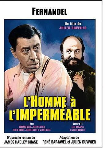 C'est une histoire compliquée et avec une série d'événements incroyables. Il y a trop de scènes cocasses et improbables mais certes le film reste sympa, il n'a pas trop vieilli. Un bon petit film original. Fernandel en fait plutôt moins que d'habitude. Bernard Blier est sublime en maître-chanteur bien salaud, bien dégueulasse. Ce film se laisse voir avec plaisir. Fernandel nous a habitué à ses rôles d'idiot congénital dans beaucoup de ses films, mais cette fois-ci, trop c'est trop. On passe quand même du bon temps et Bernard Blier est excellent. "Personnellement, je ne puis plus supporter Fernandel. Il m'agace, m'insupporte et je le trouve faux dans tous ses rôles d'aujourd'hui depuis la première image du film jusqu'au mot fin". Ainsi s'exprimait François Truffaut quand il fit sa critique de "L'homme à l'imperméable" le 13 mars 1957. Truffaut critique avait souvent la dent dure mais on ne peut que déplorer avec lui un Fernandel en parfaite roue libre. Un Fernandel que Duvivier connaissait pourtant bien pour l'avoir dirigé dans les deux premiers Don Camillo mais qui depuis un moment n'en faisant qu'à sa tête, s'évertuant à continuer dans le rôle du naïf pagnolesque qu'il n'était fatalement plus à 55 ans bien sonnés. Comme l'écrit fort bien Truffaut, ses mimiques dilatent inutilement chacune de ses scènes. L'acteur principal devient donc le premier handicap film, ce n'est certes pas la première fois mais c'est tout de même fort dommageable. La nouvelle de James Hadley Chase adaptée par René Barjavel sur le ton de la farce suffit malgré tout à retenir notre attention. En contre-point, Roger Hubert le directeur de la photographie du "Napoléon" (1927) d'Abel Gance, agrémente d'un noir et blanc très soigné le Montmartre de l'après-guerre, rendant au film sa part d'angoisse. Une galerie de portraits parfois improbables comme Bernard Blier en maître-chanteur libidineux ou le chansonnier Jean Rigaux en camarade des bons moments viennent soutenir un film un peu bancal qui selon certains s'inscrit dans ce qui est déjà la phase de déclin du grand metteur en scène naturaliste qu'était Duvivier.