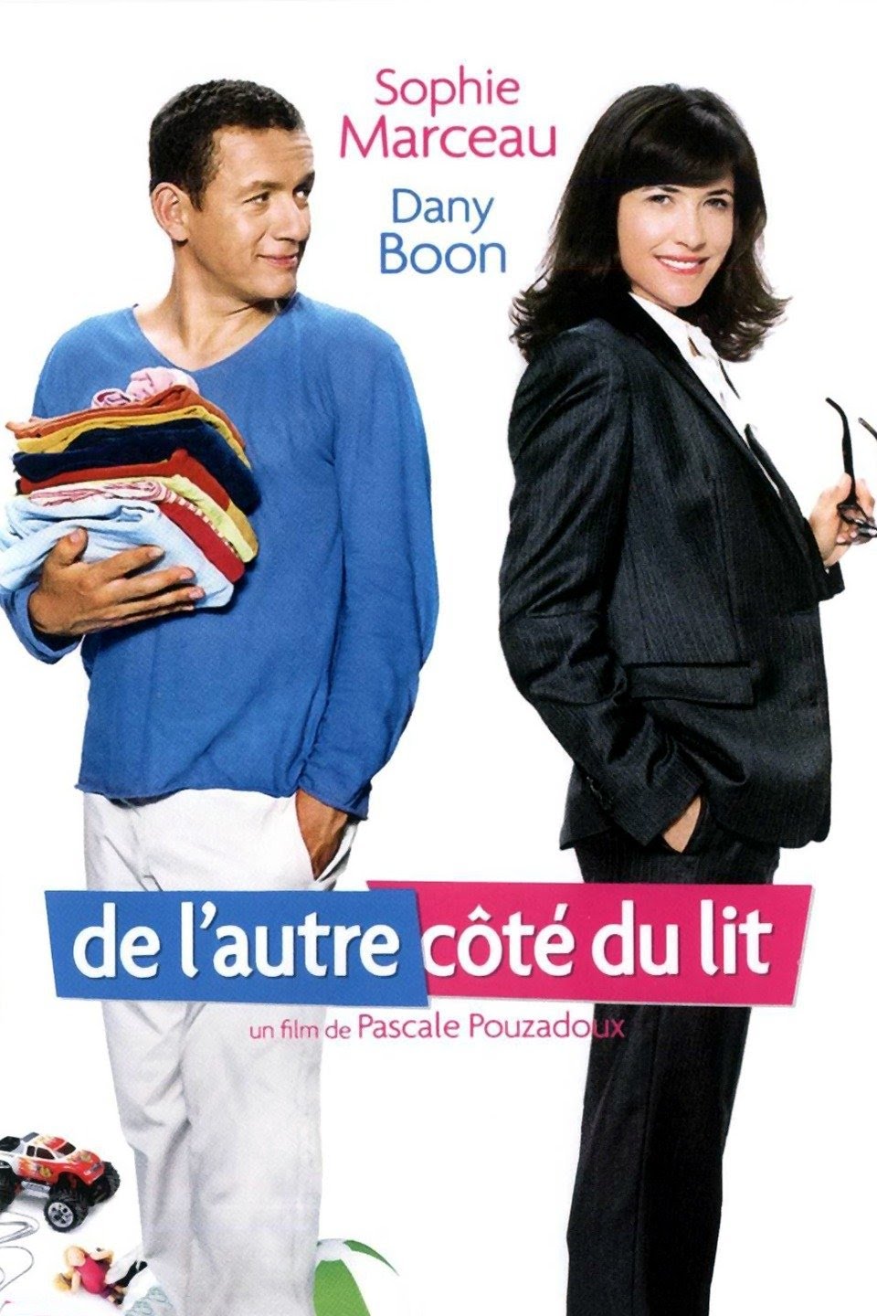 Le scénario est médiocre et prévisible, mais bon globalement avec le reste ça passe plutôt bien sans que ce ne soit non plus extraordinaire. Entre autre j'ai trouvé que les petits rôles interprétés par de bons acteurs (Duperay, Giraud, Armelle, Arsene Mosca...) apportaient leur effet au film. Je l'avais vu à sa sortie au cinéma c'est à dire il y a longtemps. J'ai bien aimé le scénario avec ses deux acteurs principaux qui sont attachants, des moments drôles, d'autres moins mais on passe un très bon moment en regardant ce film divertissant. Une comédie gentillette. Le scénario est sympathique, permettant quelques scènes amusantes, avec une Sophie Marceau et un Dany Boon passables.L'âge d'or de Sophie Marceau semble derrière elle, et Dany Boon livre une prestation évidemment moins convaincante que dans Bienvenue chez les Ch'tis, sorti un an plus tôt, mais "De l'autre côté du lit" se laisse voir, pour peu que l'on n'attende quand même pas trop de lui. L'exigence, c'est bien, mais à la simple lecture du résumé, on sait à quoi s'attendre, et si cela ne nous tente pas, pas la peine de s'embêter à regarder pour ensuite cracher sur le film. Certains passages sont tout de même bien pensés, et l'ensemble présente une vision assez savoureuse de la condition féminine et masculine dans notre société, dans nos famille, non pas sans quelques exagérations - immanquables pour une comédie. Un film réunissant Sophie Marceau et Dany Boon en tête d’affiche et y associant Roland Giraud, Antoine Duléry, Juliette Arnaud et Anny Duperey s’annoncent d’entrée comme une comédie populaire. Il ne faut donc pas chercher dans De l’autre côté du lit une œuvre très artistique mais juste un divertissement visant autant la case familiale des chaînes télévisées que le grand écran. Le film de Pascale Pouzadoux réussit donc à rendre son scénario apriori peu crédible très plaisant à suivre malgré son peu d’ambition. Est-ce que ce film est un pur chick-flick, un film pour filles ? Je pense que oui. Esthétique très colorée qui le rend irréel, scénario qui penche d'un seul côté de la balance, héroïne forte avec ses faiblesses et idée de départ typiquement féminine (mais pertinente). On rit parfois bien sûr grâce à son casting et à quelques situations certes clichés mais qui sonnent justes. C'est simple, inoffensif dans l'ensemble et le point de départ paraît tellement peu plausible que l'on a du mal à embarquer. Les acteurs sont à leur place, c'est un divertissement honorable, parfait pour le dimanche soir, bien calibré, c'est propre techniquement sans être génial bref, ce n'est pas ma came et c'est dans la droite lignée de la comédie française typique c'est à dire une histoire qui se déroule dans la haute bourgeoisie tout en voulant se rapprocher du quotidien, jouée par des stars et au budget confortable.