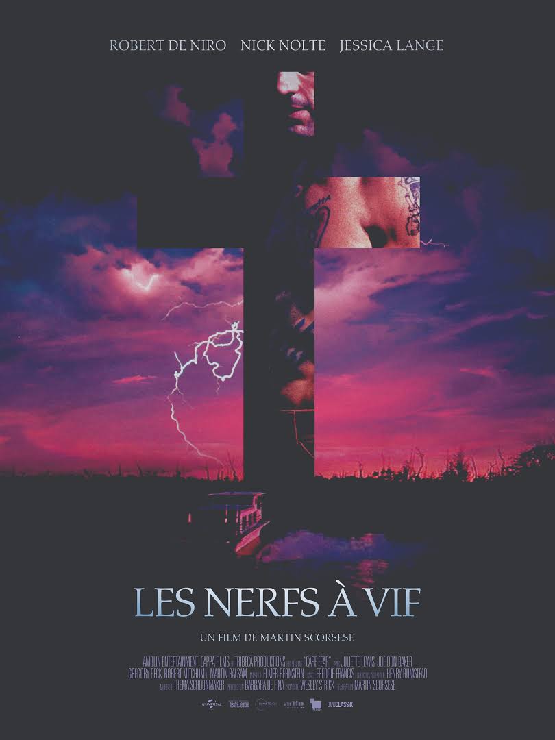 "Les nerfs à vif" ou un one man show nommé De Niro si on préfère... Car clairement l'acteur s'amuse avec ce rôle d'ex taulard diabolique qui terrorise la famille d'un avocat ambigu et maladroit (Nick Nolte, pas mal) et prend quasiment toute la place. Scorsese, de son côté, fait le job, tout en cadrages virevoltant et autres appareillages sophistiqués...C'est un peu malsain (la scène de séduction de la gamine), un poil gore, un peu alambiqué aussi... Et parfois très prévisible. Produit par Spielberg, qui voulait le réaliser, c'est finalement Scorsese qui s'est mis aux manettes avec un résultat dans le style, mais un peu paresseux quand même....Pour moi, c'était un remake qui aurait du porté la griffe d'un Brian de Palma plutôt. Mais bon, c'est comme ça. Fan de De Niro et n'ayant jamais vu ce film, j'avais hâte de le regarder. Et autant Sleepers, du même acteur (entre autres) ne m'inspirait pas et m'a très agréablement surpris ; autant Les nerfs à vif, à défaut de le trouver mauvais, m'a déçu. Pourquoi ? L'histoire part bien ; les 20 premières minutes me laissaient penser que ça allait être une histoire très psychique. La suite est trop légère à mon goût. Pas assez surprenant ; pas assez "violent" (au sens psychologique). La fin du film, sur le bateau, relève un peu le tout mais sans grande conviction. La version Scorsese repose toute entière sur le génie de l'interprétation de De Niro, qui en fait des caisses et rend son personnage diablement flippant, très éloigné de ce qu’en avait fait Robert Mitchum à l'époque. Pour le reste, c'est un hommage appuyé aux polars des années 50-60, jusque dans la musique, mais avec trop d'exagérations et de longueurs, le film peine à convaincre totalement de l'intérêt de sa démarche. Ce n'est pas le pire Scorsese loin s'en faut, mais on l'a connu plus inspiré et mémorable, avant comme après. Robert De Niro est vraiment un acteur exceptionnel! Nouvelle preuve avec cet angoissant thriller, filmé de main de maitre par Scorsese. De bout en bout, son personnage terrifie, intrigue et fascine, maintenant ainsi une tension incroyable, jusqu'au final, à mon gout trop excessif, et un peu raté.