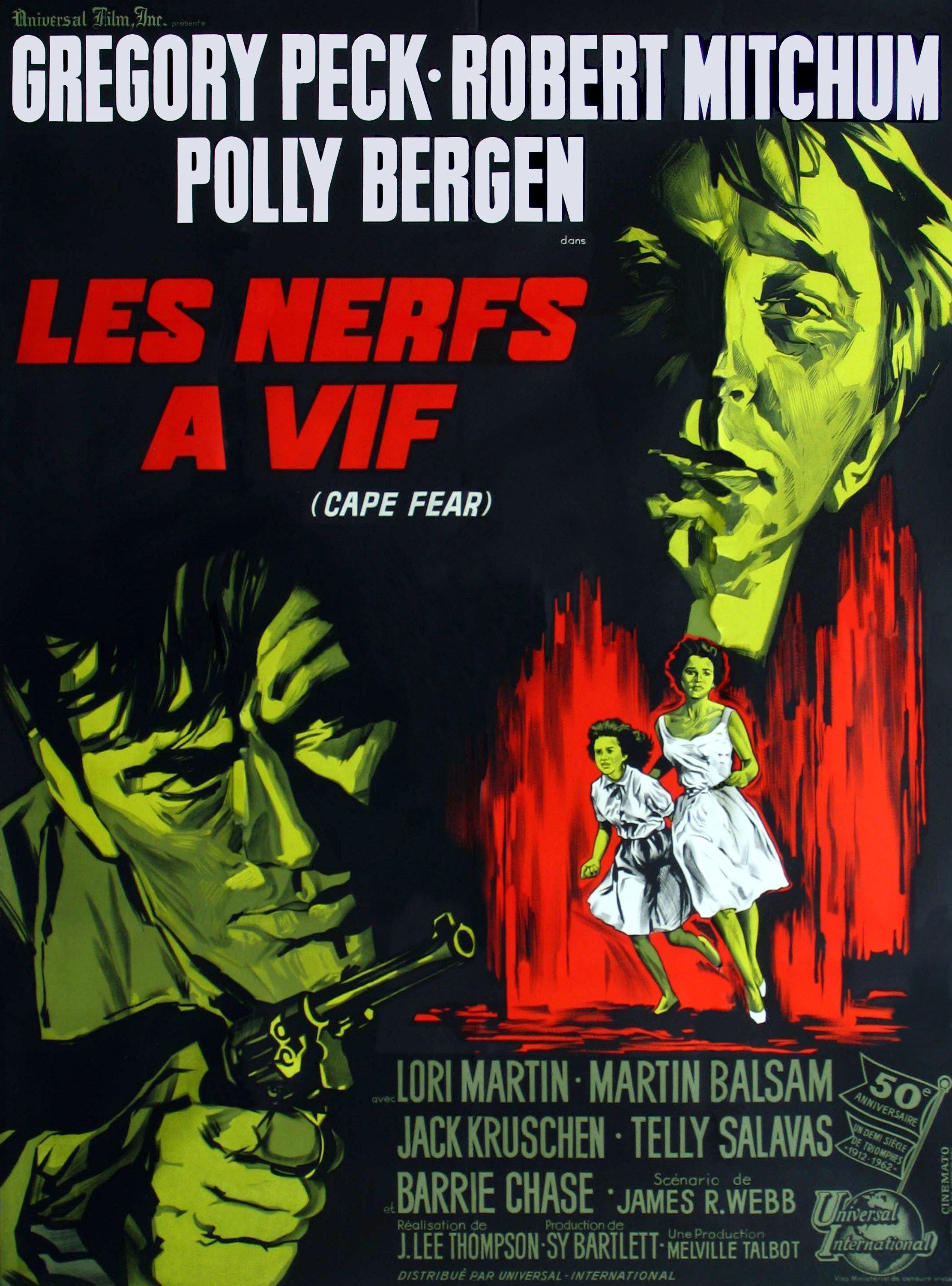 Dès le début on reconnaît dans les airs de la musique la patte de Bernard Herrmann d'ailleurs Les Nerfs à vif n'est pas sans rappeler du Hitchcock mais ce film n'est pas aussi tendu que ce à quoi je m'attendais il souffre un peu de la comparaison avec son remake réalisé par Scorsese de plus le nonchalant Mitchum est beaucoup moins effrayant que De Niro. Une légère déception pour ce classique du suspense. Même si c'est le film original, je préfère la version de Martin Scorsese, qui est selon moi beaucoup plus efficace. Il faut reconnaître que la musique de Bernard Herrmann est grandiose, mais elle ne colle pas toujours parfaitement aux images. Robert Mitchum ( dans le rôle de Max Cady ) joue plutôt bien, mais il apparaît bien moins charismatique que De Niro. L'histoire est la suivante: un homme ( Max Cady ) qui a purgé une peine de huit ans en prison est enfin libre. Il décide de se venger de son avocat Sam Bowden, qu'il juge responsable de son incarcération, ainsi que de sa fille et de sa femme. Mais l'ensemble du film de John Lee Thompson n'est pas très brillant, tout juste moyen, car le suspense n'opère pas et certaines scènes sont mal réalisées ( je pense à la scène finale, qui sera d'ailleurs remodelé par Scorsese dans son remake ). Un film aux situations inégales en somme, mais qui promet certes un bon duo d'acteur ( Robert Mitchum et Gregory Peck sont crédibles ). A voir une fois... Une assez grosse déception. Je m'attendais à un film violent, angoissant, terrifiant, mais malheureusement, je n'ai eu droit qu'à un bon film d'action, sans plus. Bien que certaines scènes soient très réussies grâce a leur violence, ou encore parfois des dialogues incisifs, l'ensemble n'arrive pas a dépasser le seuil des bons films Hollywoodiens. Le scénario est très bon au départ mais finit par retomber dans la banalité. Reste le jeu des acteurs, ou Mitchum l'emporte de peu sur Gregory Peck. Il faut dire que les deux sont particulièrement bons.