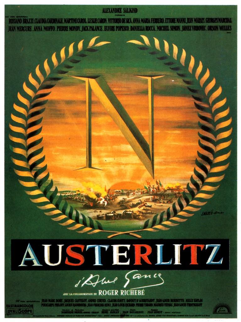 Pierre Mondy est excellent si l'on réussit à faire totalement abstraction de ses rôles légers voire comiques, ce que je n'ai pas réussi à accomplir... Sinon le film est très long et n'arrive pas à la cheville du Waterloo de Serguei Bondartchouk, sublime. On est sans aucun doute bien loin du Napoléon de Gance, introuvable même en médiathèques... La première moitié du film montre de façon passionnante comment Bonaparte fut conduit, de la même façon, à personnaliser son pouvoir, se faisant plébisciter par référendum pour devenir consul à vie, puis se couronnant empereur après les tentatives d'assassinat menées contre lui. La bataille d'Austerlitz, qui occupe la deuxième moitié du film, est finalement beaucoup moins intéressante. C'est dans la représentation du talent politique de Bonaparte et aussi de ses faiblesses (colères entraînant des décisions trop rapides, infidélités conjugales), que le film vaut, plus que pour la représentation de son génie militaire qui finit par le perdre comme bien des tyrans après lui. De ces deux heures et quarante-cinq minutes de film ressortent quelques scènes originales, comme la façon dont est montré le Sacre de Napoléon (même si on sent que c'est plus guidé par un impératif économique que par le souci de faire original !!!), et puis surtout un casting d'enfer qui en impose (attention Jean Marais, Martine Carol, Jean-Louis Trintignant, Claudia Cardinale, Orson Welles, Jack Palance, Vittorio de Sica, Michel Simon, Leslie Caron !!!) et entoure un Pierre Mondy, lui aussi d'enfer qui en impose bien sûr, à juste titre considéré par beaucoup comme étant le meilleur Napoléon du cinéma car plus vrai que nature dans la peau de l'Empereur. D'ailleurs sans remettre en doute les qualités du "Victor Hugo du cinéma", pour moi ce film est intéressant plus grâce au comédien qu'à Abel Gance.