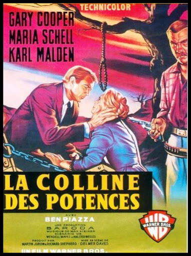 "La Colline des potences"(1958)est un western quelconque. C'est d'autant plus dommage qu'il fut tourné durant la dernière grande période du genre,et qu'il possédait l'immense Gary Cooper en tête d'affiche. L'acteur taiseux et charismatique s'y trouve toujours à son aise,en médecin marqué par son passé,qui sait aussi manier la gâchette et dépouiller les véreux au poker. Dommage que son acolyte féminine,Maria Schell,soit si fade et gâche systématiquement les nombreuses scènes mélodramatiques. Le film est plus convaincant dans sa vision d'un Ouest corrompu,où la ruée vers l'or n'est qu'un prétexte pour justifier les lynchages et autres violences. Quelques belles vues sont à noter. Évidemment,avoir pour vilains des acteurs de la trempe de Karl Malden ou George aide! Dans l'ensemble,ce western est bien filmé,assez carré,avec un final qui fait ressortir les relents du maccarthysme;mais il est tout de même très schématique,prévisible,et souffre de son rythme cahin-caha. Gary Cooper est a son aise dans la peau de ce médecin droit dans ses chaussures au passé trouble. Ce médecin est aussi tendre et généreux qu'il peut être féroce face aux hommes cruels et cupides. Des hommes cruels et cupides ne manquent pas dans ce campement de chercheurs d'or. Le réalisateur montre une facette beaucoup plus sombre et certainement plus réaliste de la ruée vers l'or. L'or qui corrompt l'homme au plus profond de l'âme tels que les immondes Karl Malden déjà habitué à l’exercice du méchant ainsi que Georges C Scott en préteur soûlard et cupide. Une belle densité dramatique et une belle photo viennent compléter les qualités de ce western. Au final un bon western certes, mais qui manque toutefois de punch avec quelques fâcheux temps morts. Un western plutôt insolite à l'image du personnage très ambigu incarné par Gary Cooper, dont il est inutile encore de souligner la prestance et le charisme, qui peut-être tour à tour sympathique ou antipathique, salaud ou généreux. Certainement un des meilleurs rôles de Coop. On peut juste déplorer qu'il ait comme partenaire féminine la fade Maria Schell (j'écris cela peut-être parce que je n'ai jamais été un grand fan de cette actrice), mais Karl Malden et George C. Scott (dont c'est le premier rôle au cinéma) assurent totalement dans le rôle de salauds. Même si le scénario est un peu décousu, la réalisation de Delmer Daves par ses nombreux mouvements de caméra est superbe et les extérieurs sont magnifiques. A voir. Avec G. Cooper dans son dernier western, face à une M. Schell resplendissante, un K. Malden bien inquiétant et un débutant du nom de G. C. Scott, le tout avec une histoire qui recèle quelques ambiguïtés, le film peut effectivement agacer, tant il est parfois trop bavard, voire trop opaque. Pour ma part, je l'ai trouvé intéressant, avec de beaux paysages, des personnages attachants, des péripéties assez rares dans le genre, une description pointue de la vie des chercheurs d'or, avec une réelle capacité à nous plonger dans ce monde, sans oublier un sens de la dramaturgie assez efficace. Alors soyons clairs, ce film ne sera jamais mon western préféré, mais c'est un beau film, interprété avec classe,